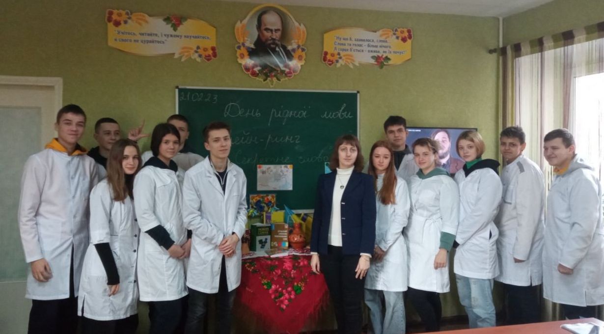 У День рідної мови за першість у володінні українською боролися студенти ОПП Стоматологія ортопедична. У рамках заходу "Брейн-ринг: "Секретне слово" здобувачі освіти фахового медико-фармацевтичного коледжу під керівництвом викладача Гулак А. М. збагатилися знаннями про походження рідної мови, хвилі запозичень, кодифікацію діалектів, першу писемну абетку, книжну мову Давнього Києва та ін. А під час змагань студенти удосконалювали як загальні, так і предметні компетентності шляхом декламації, інсценізації, вирішення логічних вправ та лексичних завдань, обговорення суперечливих мовних питань. Сьогодні ми вшановуємо рідну - материнську - мову і пам'ятаємо: "Людина, котра знає українські слова, ще не знає мови (О. Яремко)"