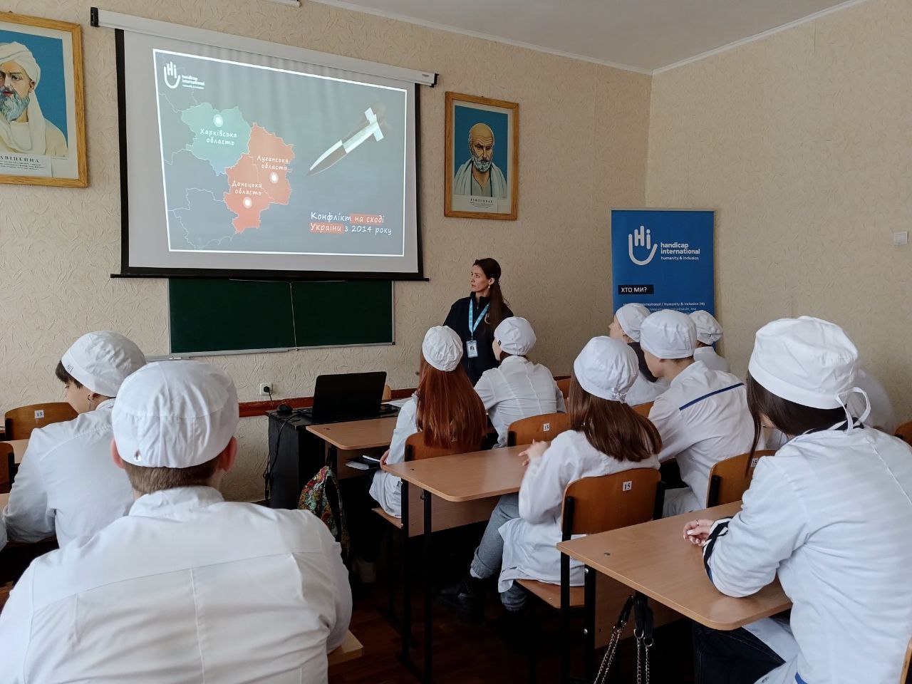 Протягом тижня, з 26 лютого по 1 березня, співробітники міжнародної гуманітарної організації Handicap International Оксана Коновал і Олексій Шанкер проводили лекції для здобувачів освіти другого курсу, метою яких було підвищити освіченість та усвідомлення ризиків, пов'язаних з вибухонебезпечними предметами. Студенти зрозуміли, наскільки важливо бути обізнаними з потенційними небезпеками, які можуть виникнути в повсякденному житті.