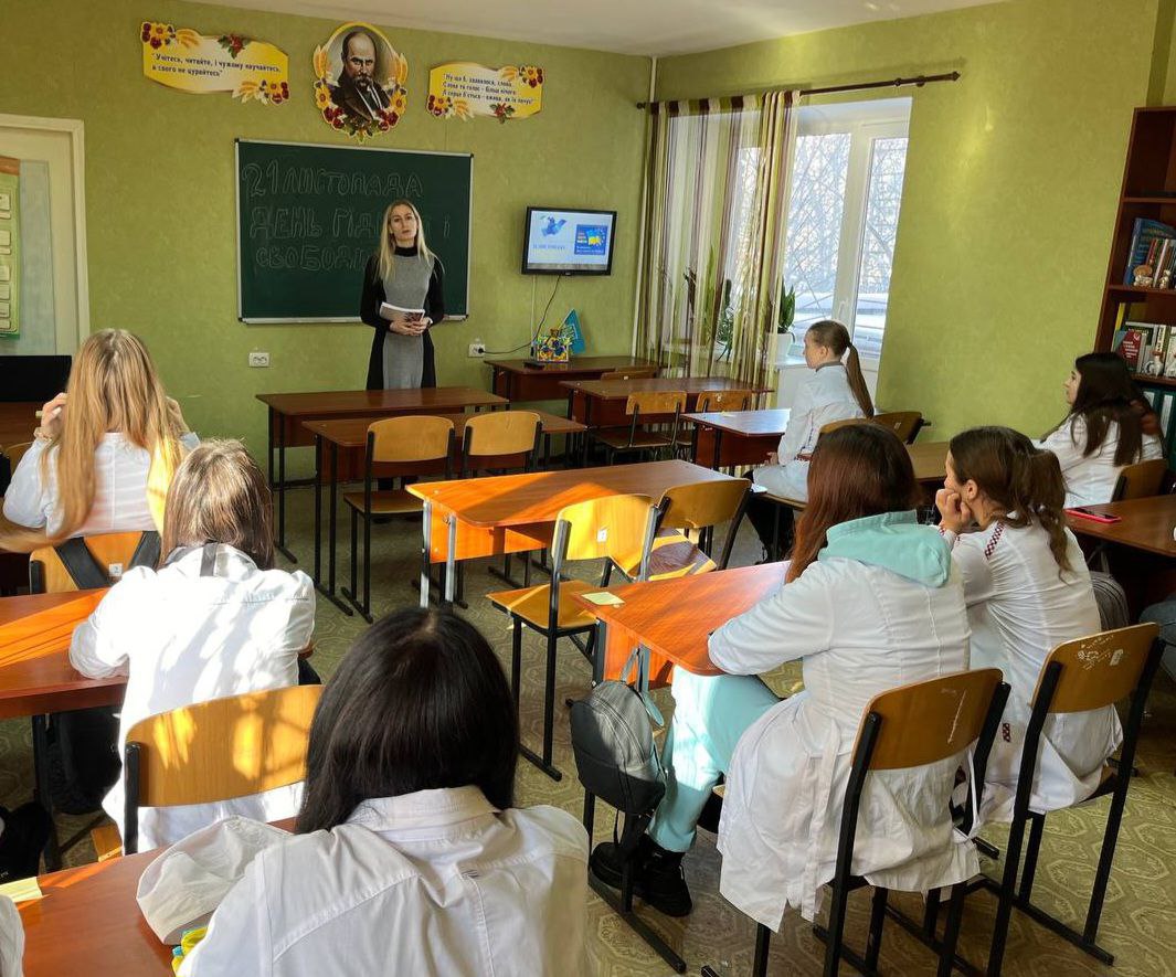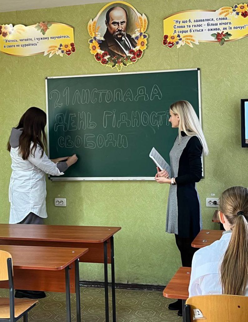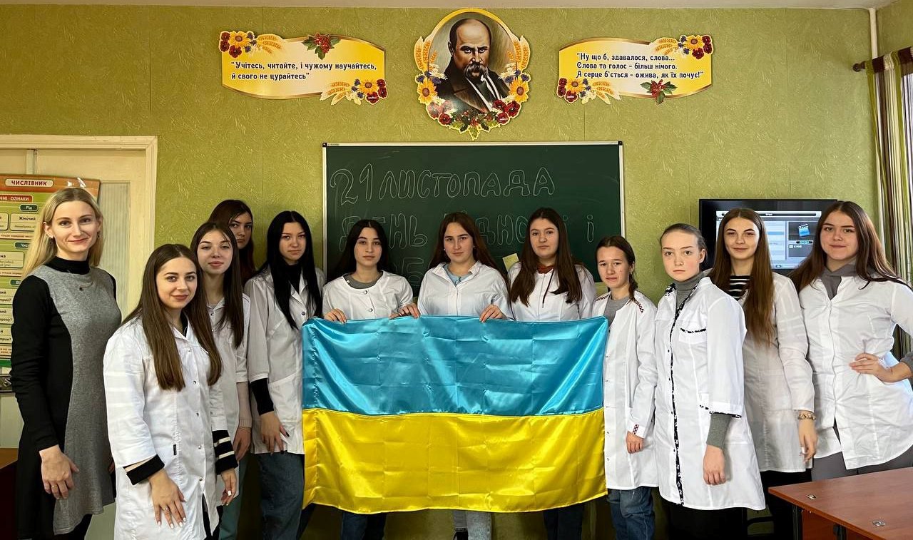У цей день студенти фахового медико-фармацевтичного коледжу переглянули фільм «Революція Гідності: з чого все починалося», взяли участь у майстер-класі з виготовлення янголів-оберегів для воїнів ЗСУ. Викладач Вікторія Прокопенко провела виховну годину на тему «Україна - країна нескорених», головною метою якої було розповісти студентам про доленосні події в Україні початку ХХІ століття та спонукати їх розвивати бажання стати гідними громадянами України.