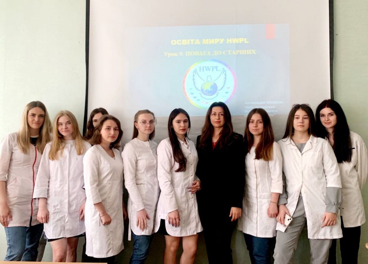 Дев'ятий урок миру на тему: «Повага до старших» в рамках реалізації проєкту " Освіта миру HWPL" провела для здобувачів освіти 2 курсу ОПП Фармація викладачка коледжу Оксана Воробйова. Мета уроку - зрозуміти, що від ввічливого ставлення до батьків, поваги до вчителів, шанобливого ставлення до старших залежить розвиток поколінь, які прагнуть жити у порядку та мирі.