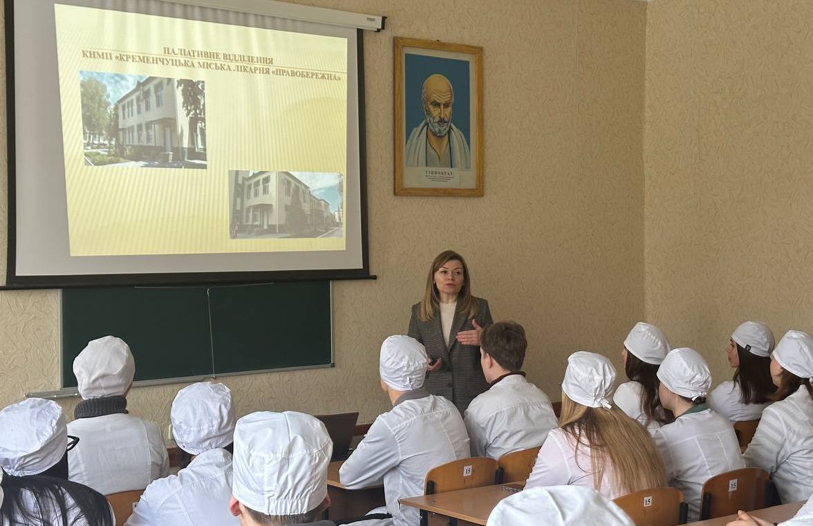 Лекція пройшла у дружній атмосфері. Здобувачі освіти з великою цікавістю слухали спікерку Величко Ірину Вячеславівну, заступника директора з медсестринства КНМП «Кременчуцька міська лікарня «Правобережна».