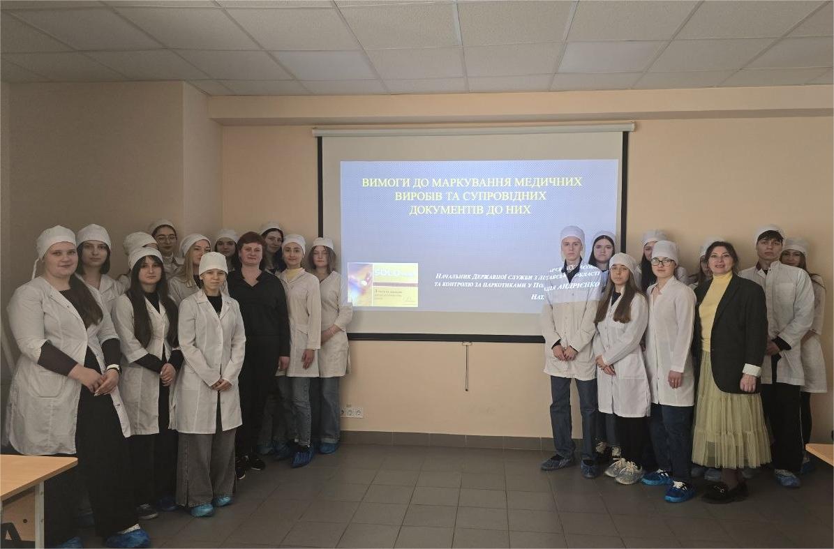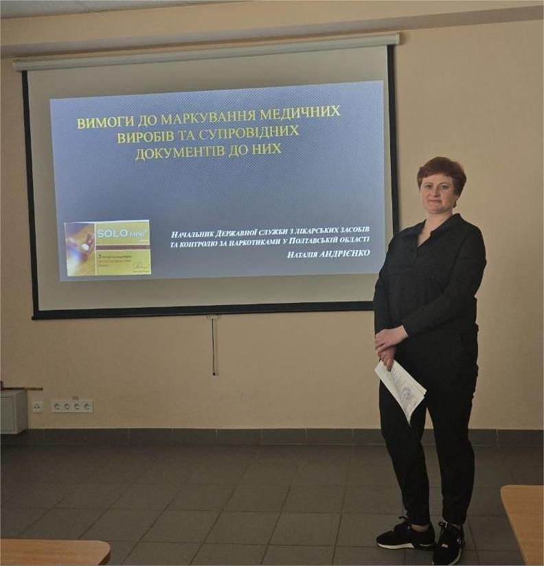 31 березня 2026 року для здобувачів освіти ОПП Фармація відбулася змістовна та актуальна гостьова лекція на тему: «Вимоги до маркування медичних виробів та супровідних документів до них», яку провела Наталія АНДРІЄНКО — начальник Державної служби з лікарських засобів та контролю за наркотиками у Полтавській області.