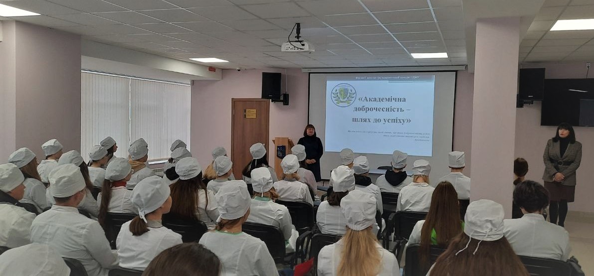 Освітній процес, як і кожна сфера діяльності тісно пов’язаний з моральними та етичними аспектами. Сукупність духовних цінностей та визначених законом правил, якими керуються усі учасники освітнього процесу називають академічною доброчесністю. Це і стало темою інформаційної години, яку провела заступник директора з навчально-методичної роботи Біланова Л.П. для здобувачів освіти перших курсів фахового медико-фармацевтичного коледжу Полтавського державного медичного університету. Студенти ознайомились з нормативно-правовою базою, зокрема з Кодексом академічної доброчесності Полтавського державного медичного університету, Положенням про академічну доброчесність здобувачів освіти та співробітників Полтавського державного медичного університету, розглянули основні принципи академічної доброчесності, види порушень та наслідки недотримання академічної доброчесності. Після обговорення питань цієї теми було зроблено висновок, що чесне здобуття якісної освіти є ключем до успіху в побудові успішної кар’єри
