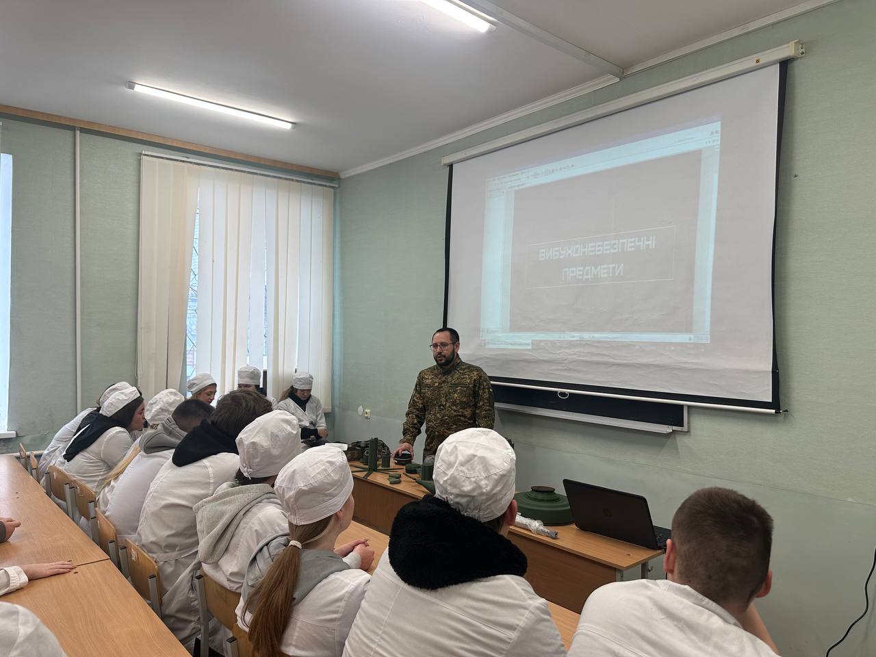 Сьогодні для здобувачів освіти коледжу молодший сержант відділу рекрутингу Національної гвардії України військової частини 3052 Дмитро Черненко провів інформаційний захід на тему «Вибухонебезпечні предмети», під час якого студенти дізналися про основні види мінно-вибухових загроз, правила поведінки у разі їх виявлення та алгоритм дій, що дозволяє зберегти життя й уникнути паніки.