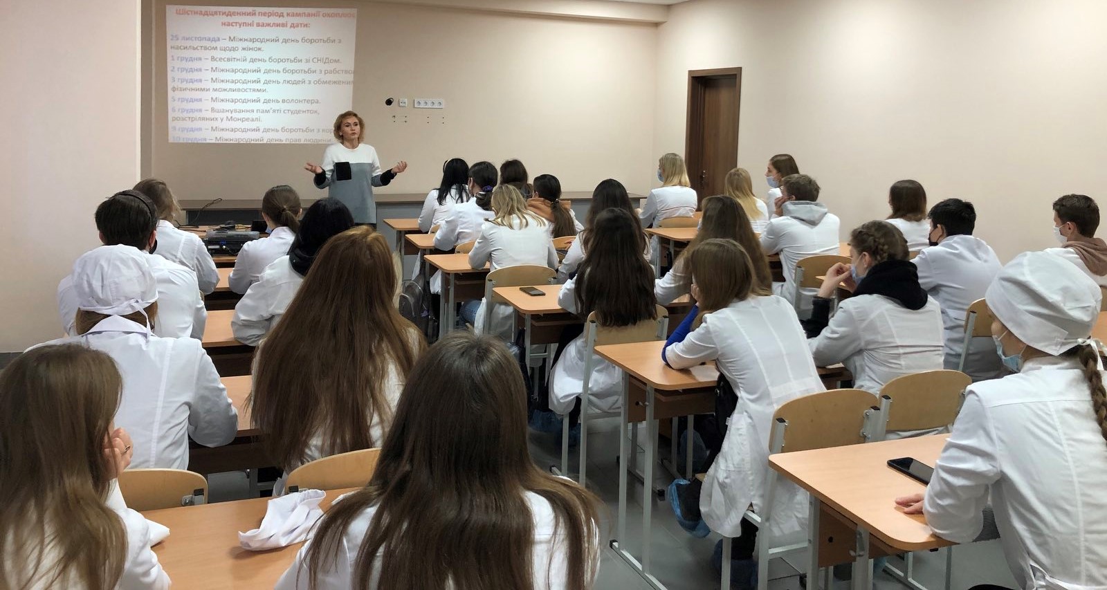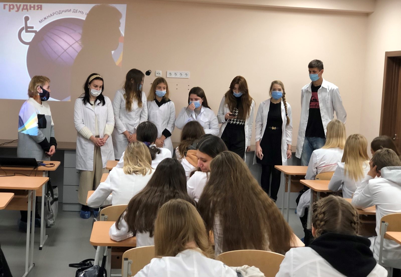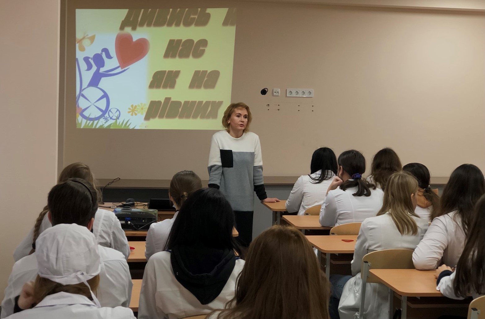 До Міжнародного дня людей із обмеженими можливостями у Фаховому медико-фармацевтичному коледжі ПДМУ практичним психологом Тетяною Климач було проведено інтерактивну лекцію "Дивись на нас як на рівних". Було піднято проблеми їхнього життя у нашому суспільстві, а також висвітлено основні досягнення українських паралімпійців.