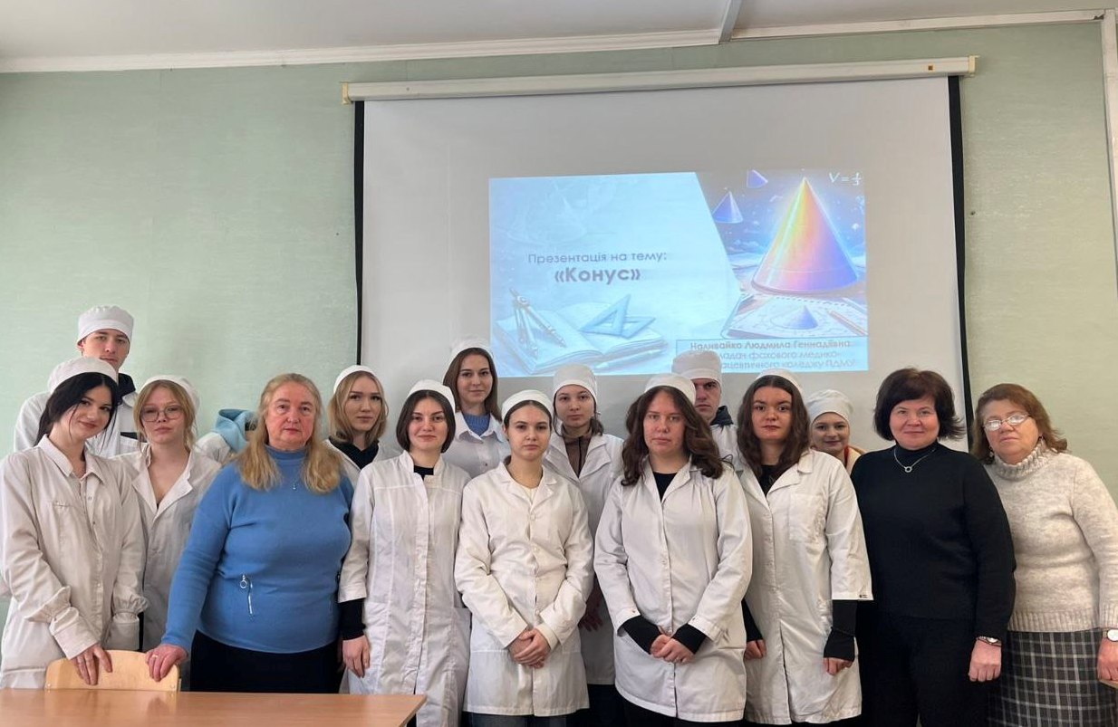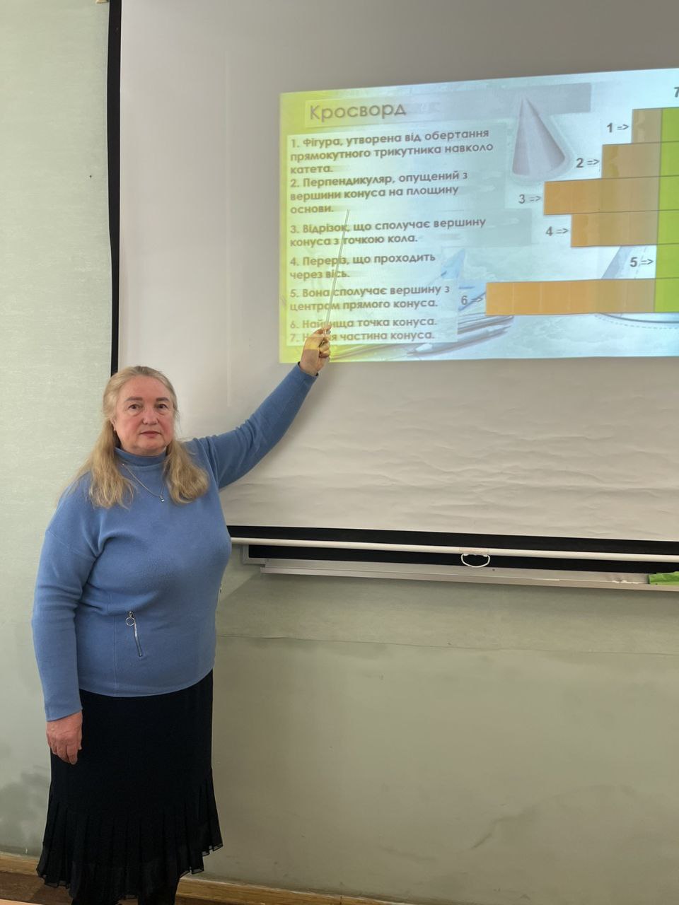 Студенти розгадували математичні кросворди, вели дискусії про елементи конуса, майстерно обчислювали площі поверхонь та перевіряли свої знання під час самостійної роботи за картками.