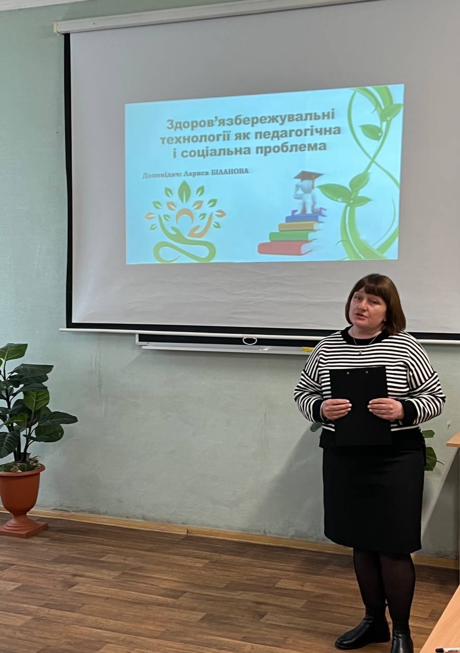 Огляд сучасних здоров’язбережувальних освітніх технологій та їх аналіз був представлений у виступі заступниці директора коледжу, викладача-методиста Лариси Біланової.