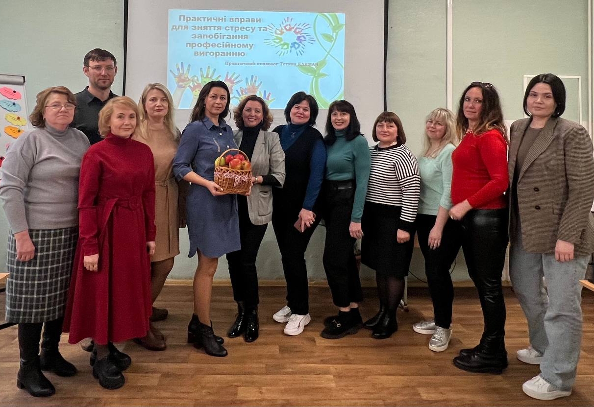 За участі практичного психолога Тетяни Климач проведені практичні вправи для зняття стресу та запобігання професійному вигоранню.