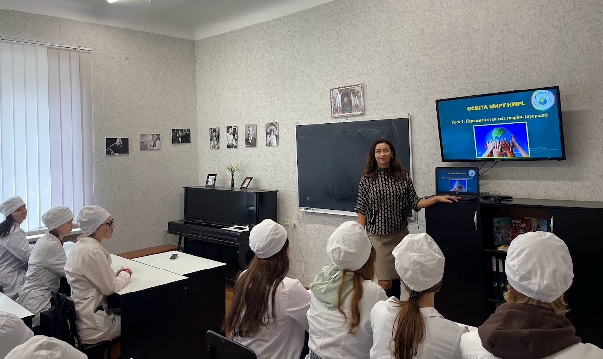Перший урок «Первісний стан усіх творінь», проведений викладачами Наталією Куценко та Оксаною Воробйовою, відкрив здобувачам освіти принципи та механізми різноманіття, гармонії та взаємодії у природі як приклад для наслідування в побудові миру людства.