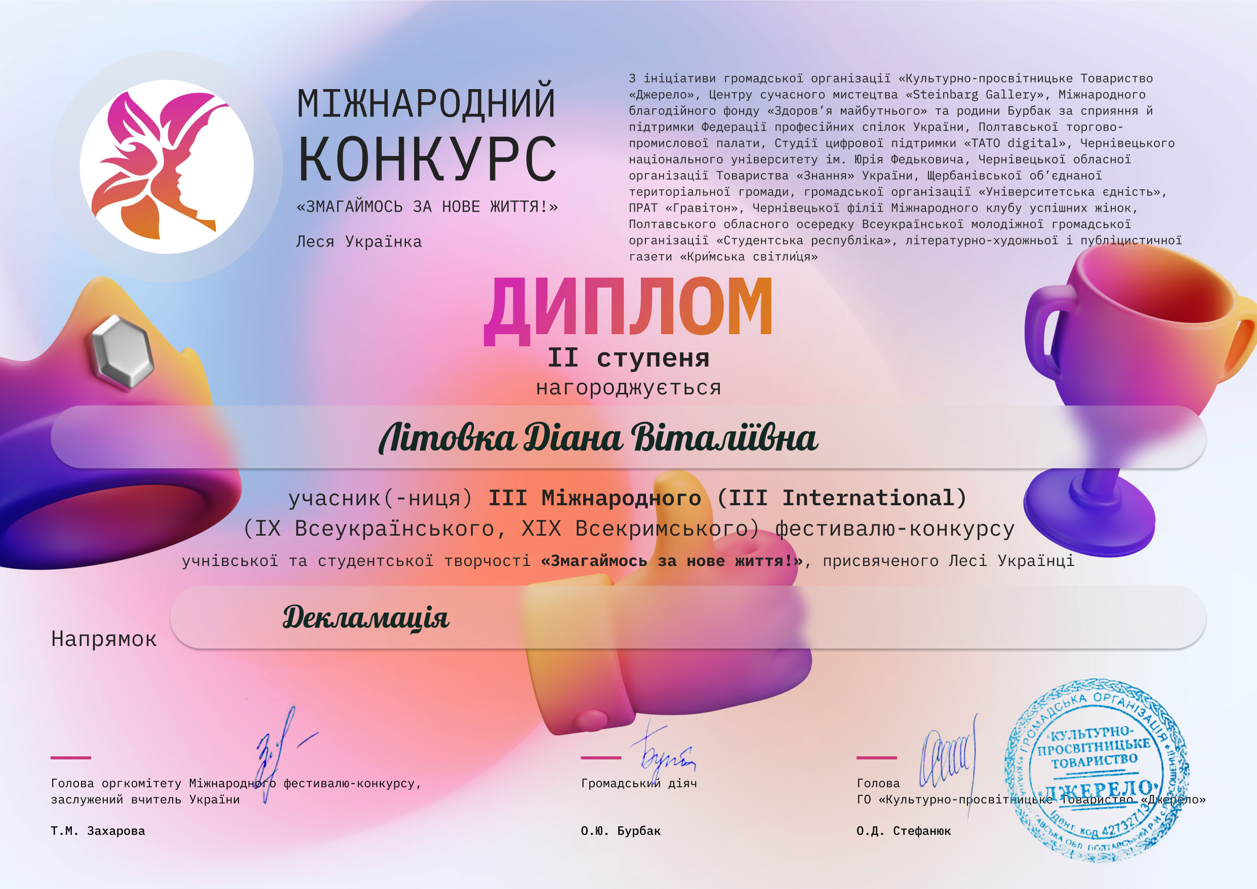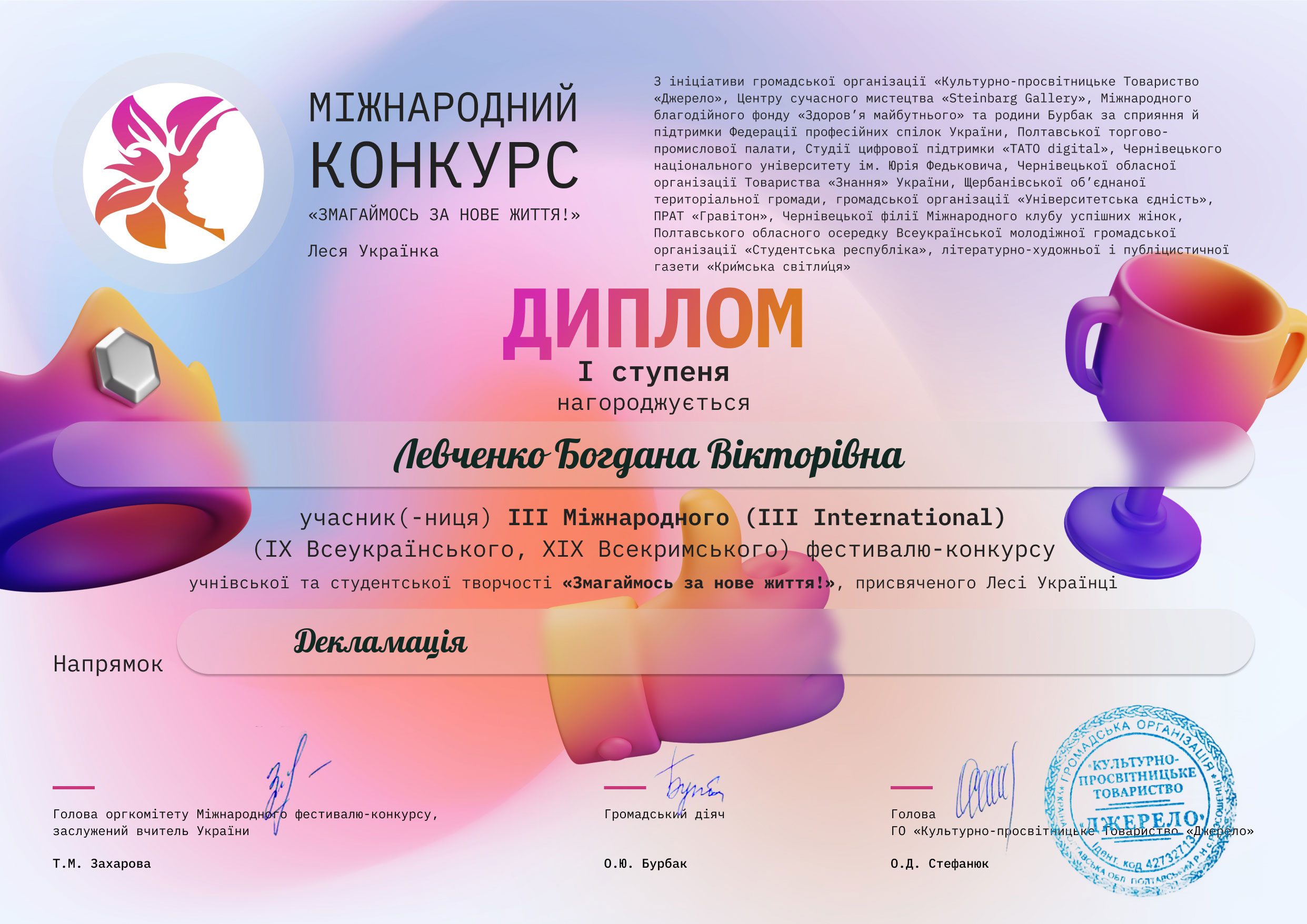 Цьогоріч студенти ОПП Фармація Богдана Левченко, Діана Літовка у ІІI Міжнародному (ІІІ Інтрернаціональному), IХ Всеукраїнському, XІХ Всекримському конкурсі посіли І-ІІ місця.