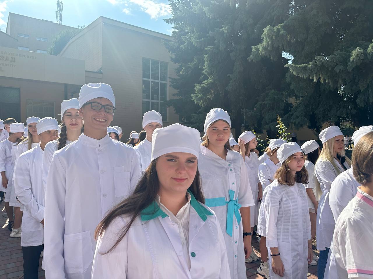 Шановні студенти, відсьогодні ви стали частиною великої родини медичних працівників, і ми віримо, що кожен із вас зможе внести свій внесок у цю благородну справу. Нехай цей день стане для вас початком цікавого, але й водночас складного шляху. Відкривайте нові горизонти, прагніть до знань та не бійтеся труднощів. Ми віримо у ваші сили та готові підтримати на кожному кроці.