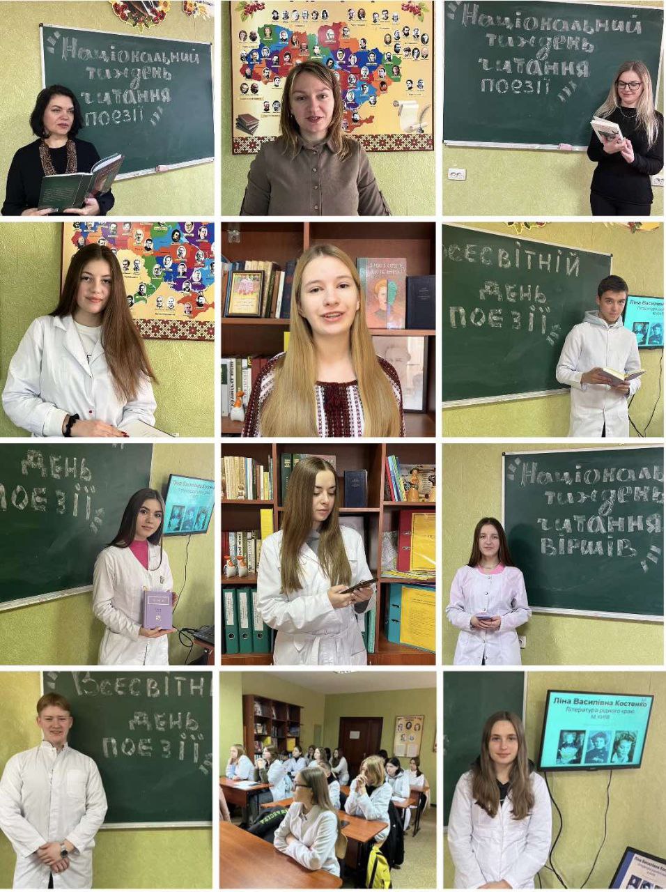 Зі вступним словом до студентської молоді звернулася викладачка української мови та літератури Алла Лисенко, яка наголосила, що Тиждень поезії є чудовою нагодою відзначити роль поетів та поеток у культурному, духовному житті народу, адже саме поезія як форма літератури на всі виклики реагує найпершою. Звучали вірші Тараса Шевченка, Лесі Українки, Василя Стуса, Василя Симоненка. Особливе захоплення викликала поезія Сергія Жадана, Ліни Костенко, Юрія Андруховича, Юрія Іздрика.