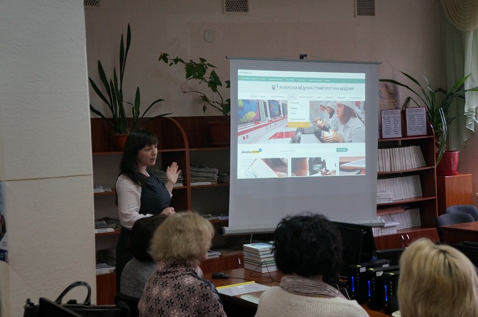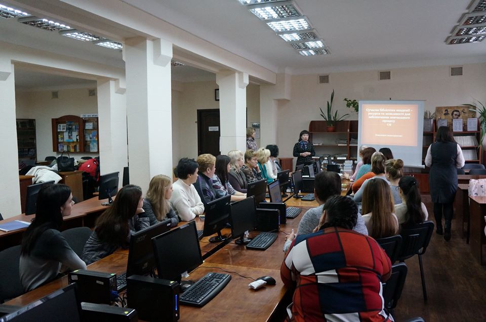 Працівники бібліотеки ознайомили студентів з вебресурсами презентували можливості бібліотеки, навчили користуватися електронним каталогом для знаходження потрібної літератури. Під час заняття було висвітлено поняття репозитарію, принципи розміщення інформації та алгоритм пошуку.