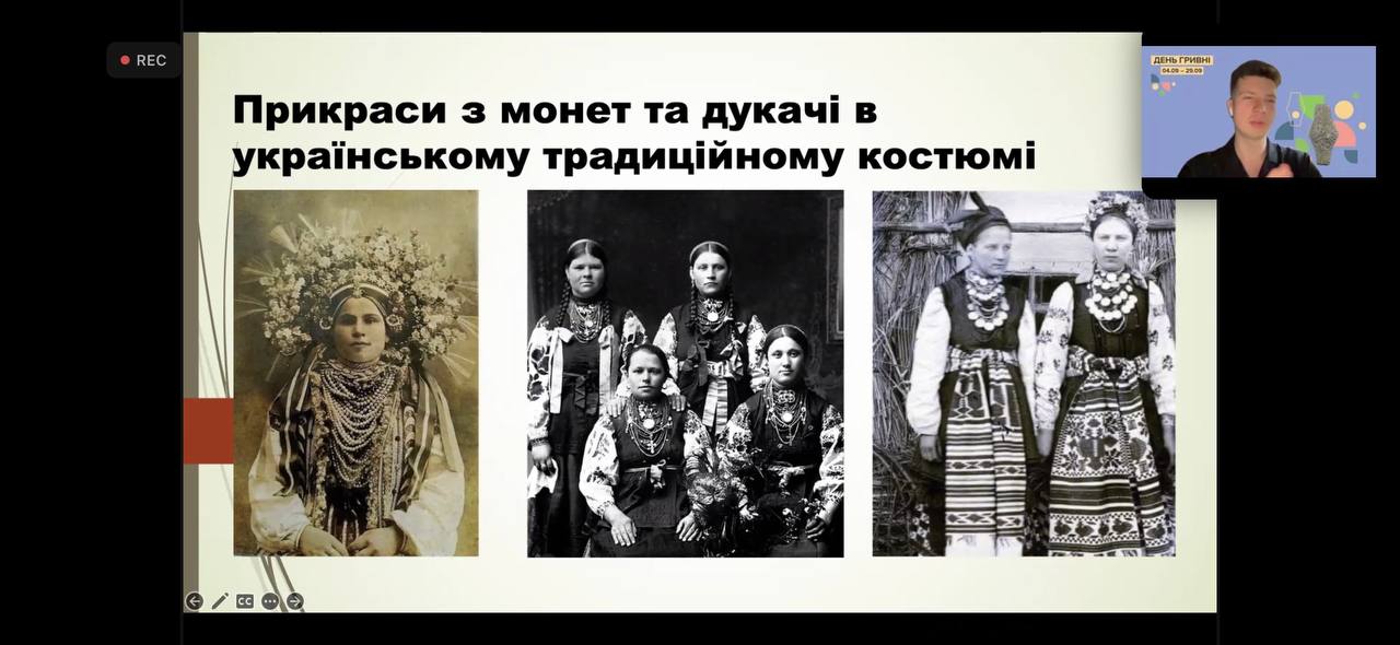 05.09.2023 року відбулася онлайн зустріч з істориком, етнографом, аспірантом Інституту мистецтвознавства, фольклористики та етнології ім. М. Т. Рильського НАН України Ігорем Турейським, який розповів про українські традиційні прикраси та їхні виразні взірці, для виготовлення яких використовувалися монети.