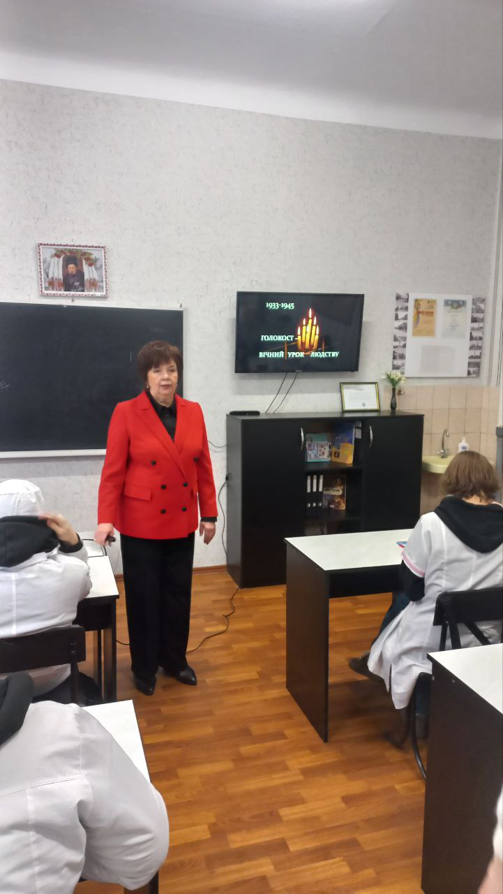 Розпочала тиждень комісії викладач Наталія Гончаренко, яка провела виховну годину на тему «Голокост – вічний урок людству», на якій здобувачі освіти змогли наочно побачити як прояви ксенофобії та нетерпимості можуть вплинути на суспільство, і чому важливо берегти пам’ять про жертв цієї трагічної сторінки історії.