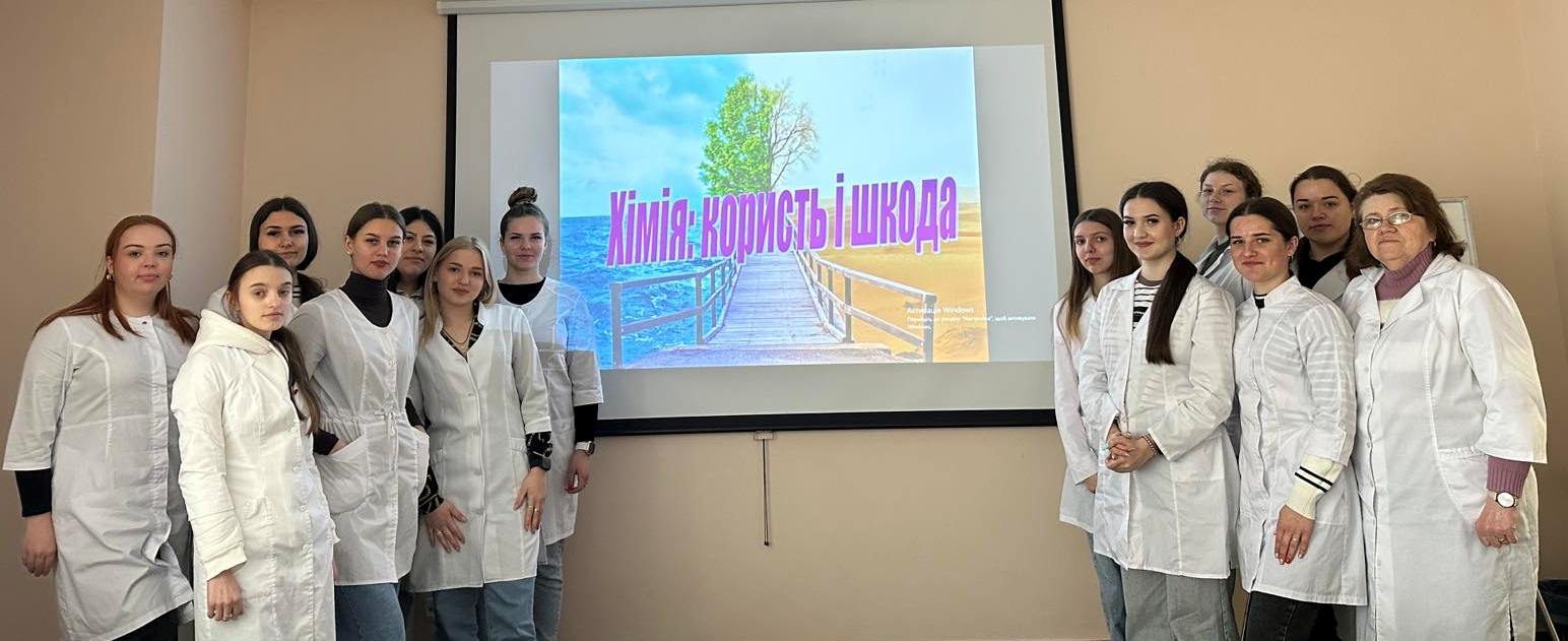 Викладачем Сизоненко Н.В. зі cтудентами ОПП Фармація проведена дискусія на тему «Хімія у нашому житті: користь і шкода». Студенти розповіли про використання продуктів хімії і хімічних процесів у промисловості й сільському господарстві, на транспорті й у медицині, у будівництві й побуті. Були заслухані і думки щодо шкідливого впливу хімії на природне середовище та на здоров’я людини. Учасники дискусії дійшли висновку, що речами потужного впливу на природу, які дає людству хімічна галузь, люди повинні користуватись розумно і раціонально.