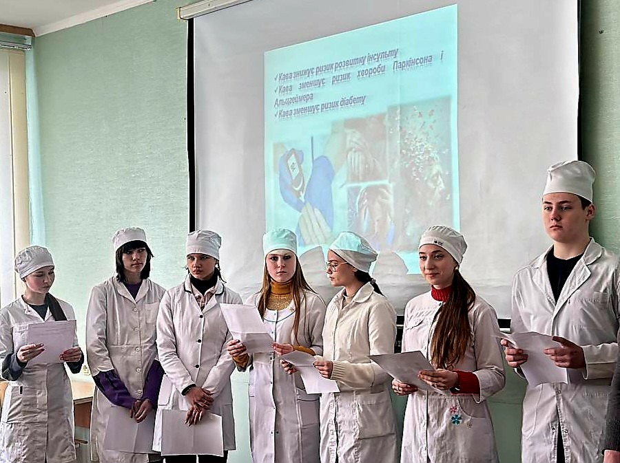 Викладачем Нирковою Ю.В. проведений захід на тему «Хімія зі смаком кави». Хочеться пригадати слова відомого письменника Оноре де Бальзака: «Після чашки кави все спалахує, думки тісняться, як батальйон великої армії на полі битви!». Здобувачі освіти ОПП Стоматологія ортопедична із зацікавленням досліджували історію походження кави та хімічний склад кавових зерен, зокрема акцентували увагу на вмісті органічних речовин, аргументували корисний та шкідливий вплив кави на організм людини, давали поради як правильно без шкоди для здоров’я вживати каву.