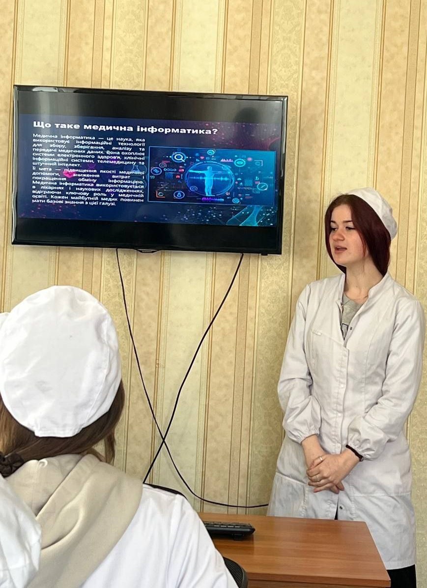 Викладачем Солодом А.В. зі cтудентами ОПП Фармація була проведена інформаційна година "Інформатика у медицині: можливості та перспективи". Атмосфера заходу була активною та пізнавальною. Кожен з учасників виступив з власною частиною, розкриваючи різні аспекти застосування інформаційних технологій у медичній галузі. У завершальній частині викладач підсумував ключові моменти виступів і узагальнив отриману інформацію. Учасники не лише продемонстрували власні напрацювання, а й дізналися багато нового про цифрові інструменти, які змінюють сучасну медицину. Захід залишив позитивні враження у всіх присутніх.