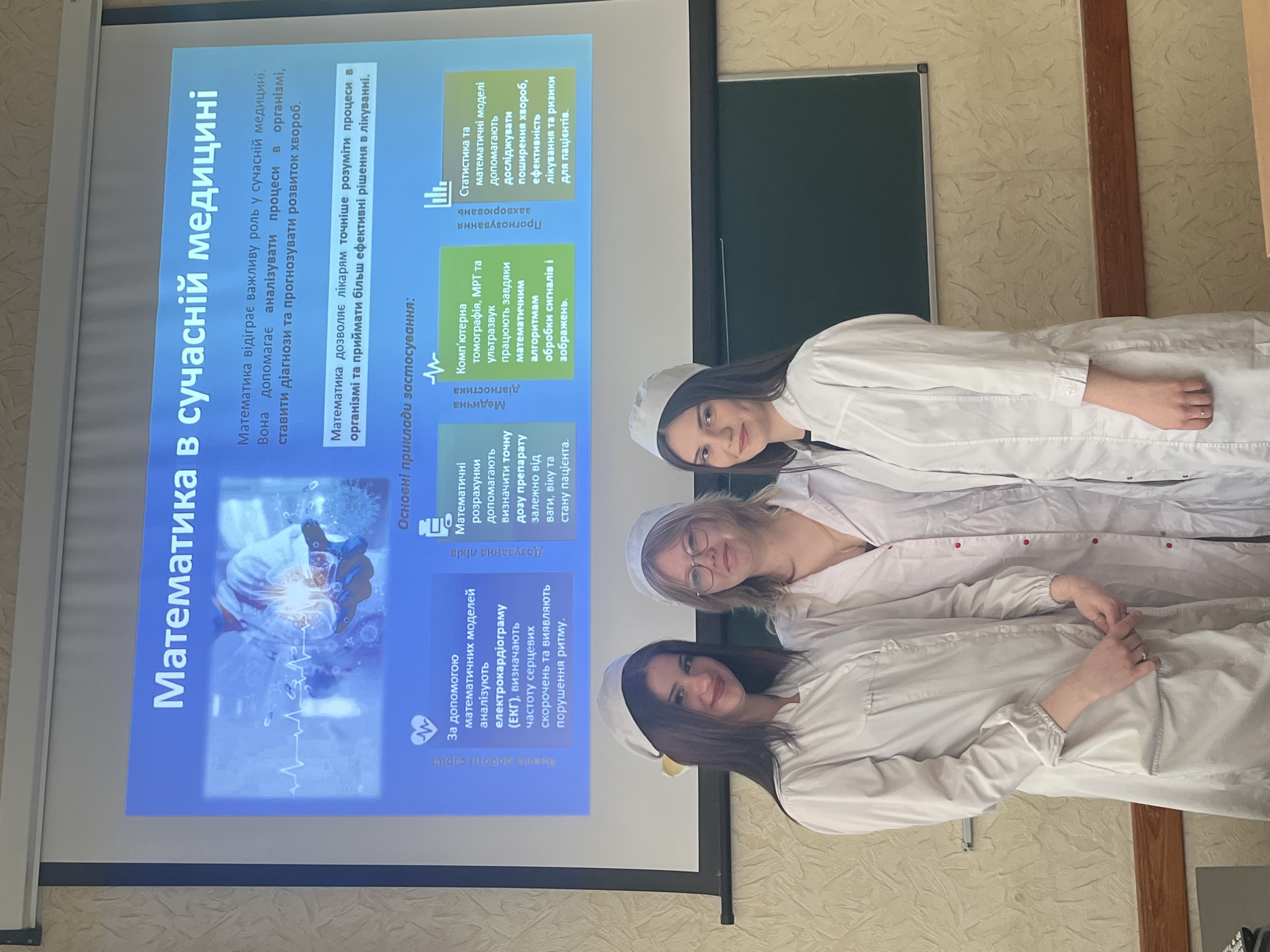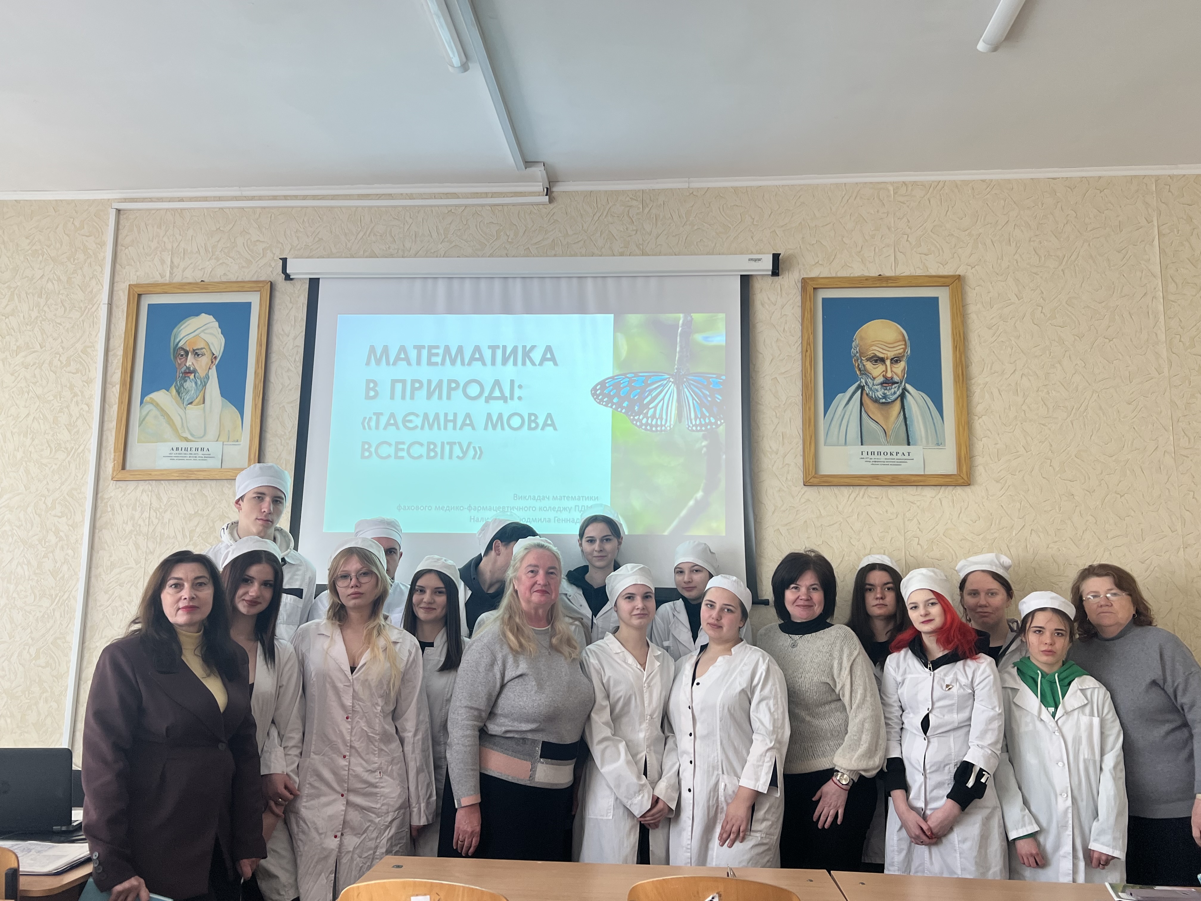 Пізнавальний захід «Математика в природі: «Таємна мова всесвіту» продемонстрував, що математика — це не лише формули та обчислення, а й універсальна мова, якою “говорить” навколишній світ. Під час заходу учасники ознайомилися з проявами математичних закономірностей у природі: симетрією рослин і тварин, спіральними структурами, пропорціями та ритмами, що лежать в основі природних форм. Особливу зацікавленість викликали приклади «золотого перерізу», які можна спостерігати у будові листків, квітів і навіть людського тіла. Інтерактивна частина заходу включала обговорення, завдання на спостережливість та пошук математичних закономірностей у навколишньому світі. Це дозволило студентам по-новому поглянути на математику та усвідомити її тісний зв’язок із природничими науками та медициною.
