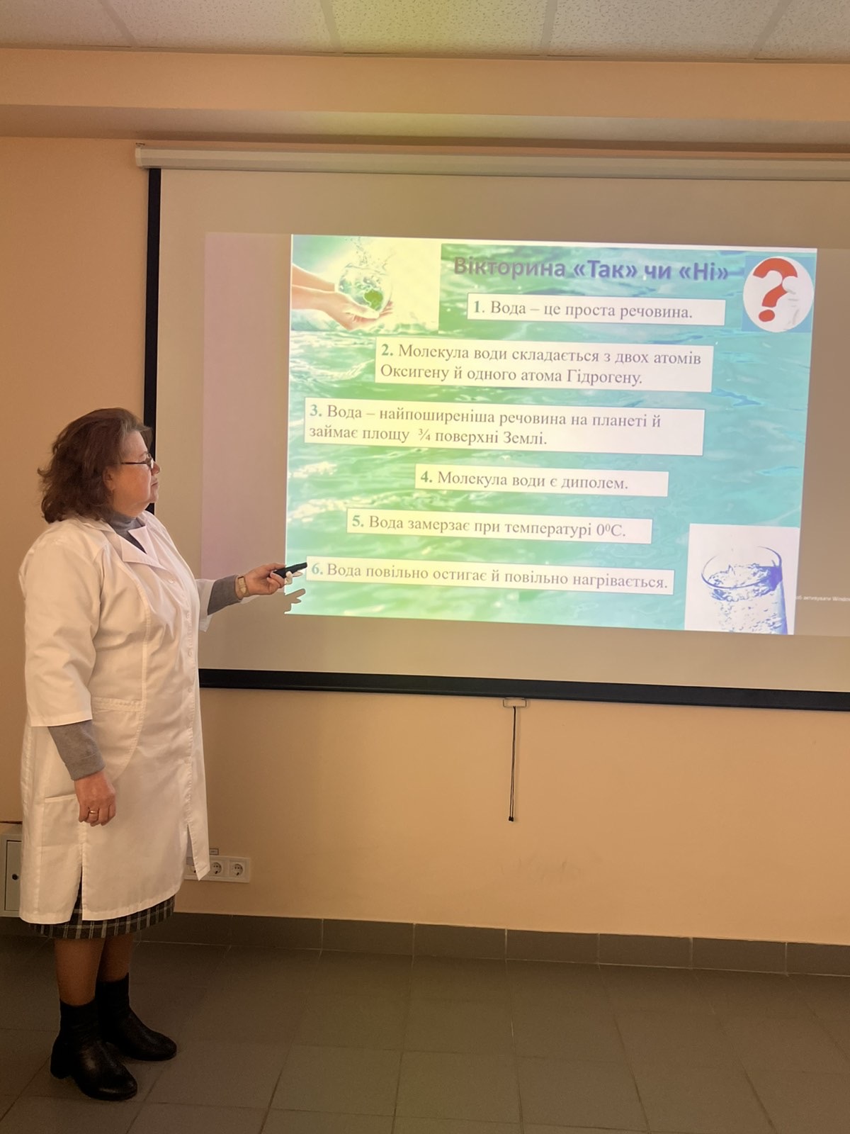 Викладачем Сизоненко Н.В. був проведений виховний захід на тему «Цікаві факти про воду», який об’єднав пізнавальний інтерес студентів із їхньою майбутньою професією. Під час заходу студенти дізналися про унікальні властивості води, її роль на нашій планеті, значення для організму людини, ключову роль у медицині й фармації. а також про те, як хімічний та бактеріологічний склад води впливає на здоров’я людини. Були розглянуті органолептичні методи аналізу води, роль Гідрометцентру у моніторингу якості води та контроль якості питної води Хімбаклабораторією КП Полтававодоканал. Студенти також ознайомилися із простими способами дослідження якості питної води в домашніх умовах. Наприкінці заходу проведена міні-вікторина, що дозволило студентам продемонструвати свої знання та ерудицію.