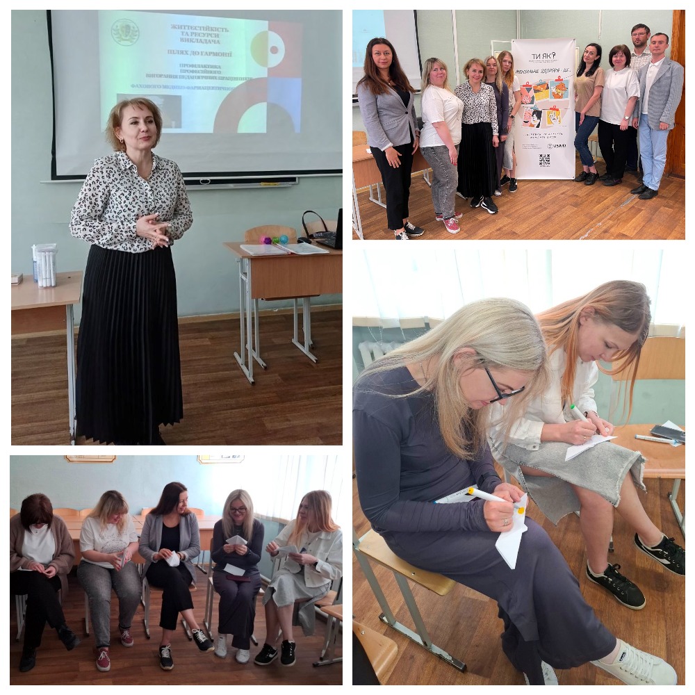 Викладачі долучилися до психологічного тренінгу «Життєстійкість та ресурси викладача. Шлях до гармонії», який провела практичний психолог Тетяна Климач. Учасники працювали над емоційним вигоранням, знаходили внутрішні ресурси й ділилися надихаючими сенсами.