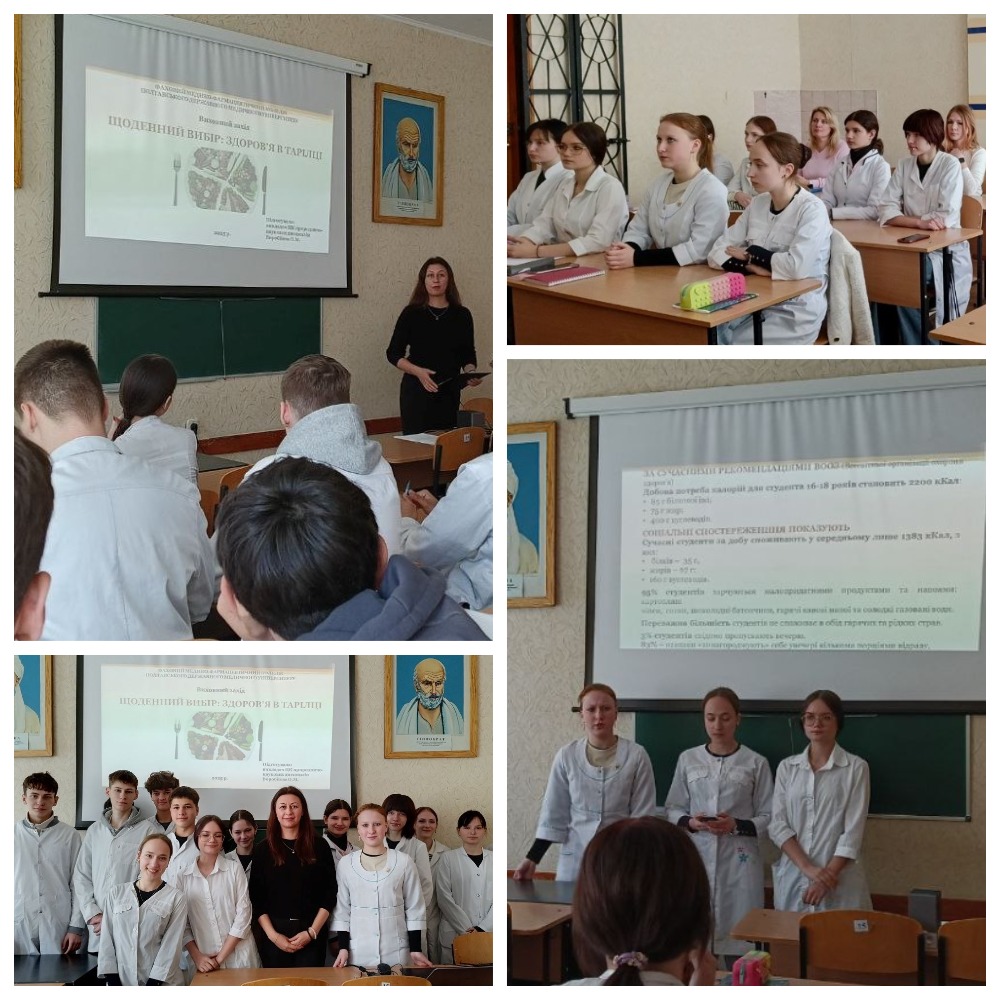 Для здобувачів освіти ОПП Стоматологія ортопедична викладачкою Оксаною Воробйовою проведено виховний захід «Щоденний вибір: здоров’я в тарілці», спрямований на формування стійких навичок ціннісного ставлення до власного здоров’я та здоров’я оточуючих. Студенти активно включалися в діалог, брали участь у навчальному квесті, що супроводжувався вправами з оцінки корисності продуктів. Захід сприяв формуванню ціннісного ставлення до здорового харчування.