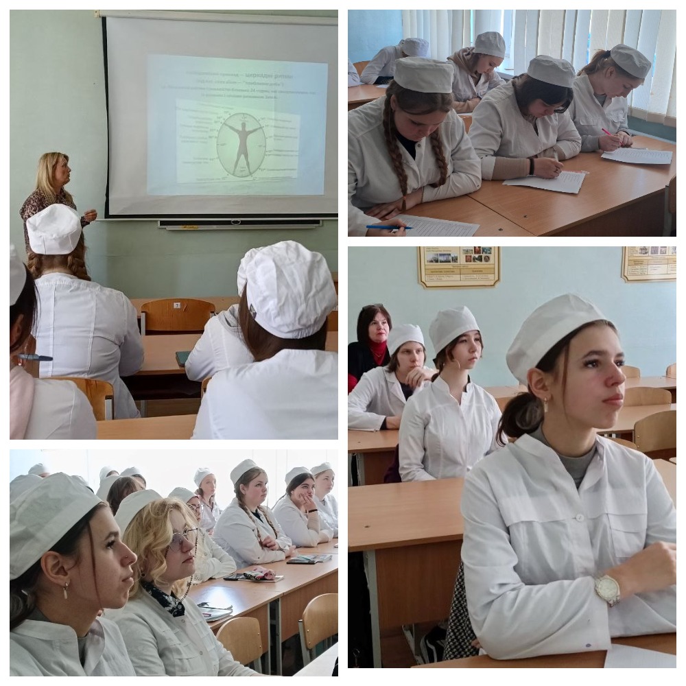Викладач Галина Деміденкова провела інформаційну годину на тему «Біологічний годинник» для здобувачів освіти ОПП Сестринська справа, присвячену впливу біоритмів на організм людини. Учасники дізналися про типи біологічного годинника, їхній вплив на сон, активність і працездатність. Тест «Сова чи жайворонок» викликав інтерес і обговорення, а також сприяв усвідомленню індивідуальних особливостей та адаптаційних стратегій.