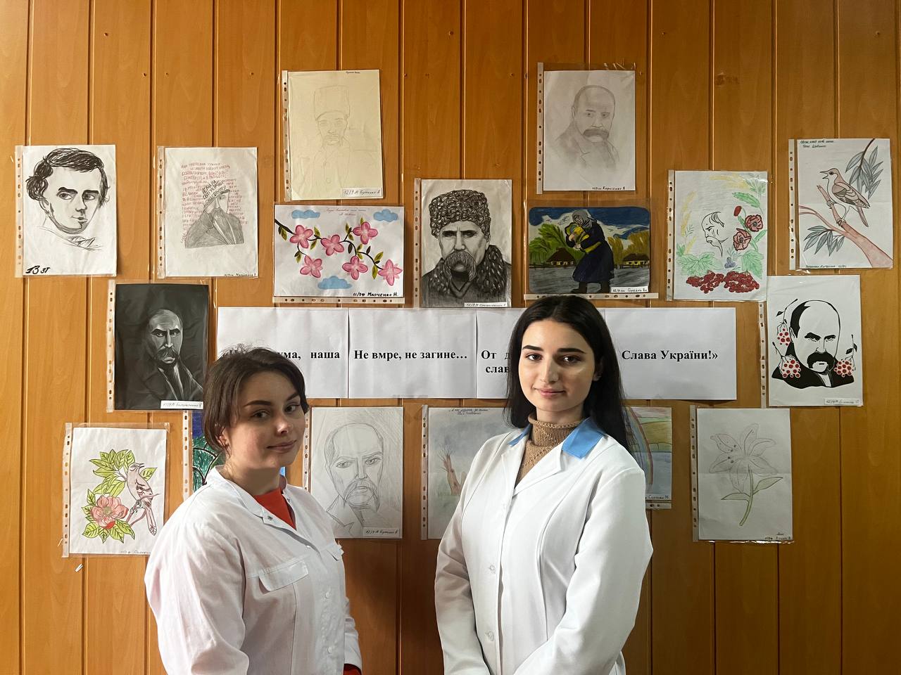Традиційно на початку березня світова громадськість відзначає День народження Тараса Григоровича Шевченка, тож саме у ці дні (6-10 березня) у стінах фахового медико-фармацевтичного коледжу проходив тиждень циклової комісії української мови та літератури з іноземною мовою. З метою вшанування постаті Кобзаря здобувачами освіти перших курсів ОПП Стоматологія ортопедична, Сестринська справа та Фармація разом із викладачами Клименко О.Р. та Гулак А.М. було організовано виставку творчих робіт «Наша дума, наша пісня Не вмpе, не зaгинe… От де, люде, наша слава, Слава України!» із відеосупроводом – декламацією найулюбленіших поезій митця.