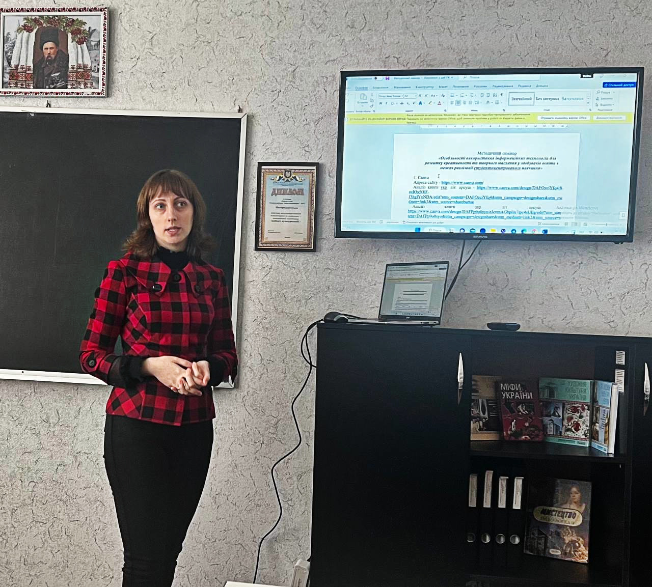 Підсумком проведення тижня ЦК української мови та літератури з іноземною мовою став методичний семінар «Особливості використання інформаційних технологій для розвитку креативності та творчого мислення у здобувачів освіти». Метою заходу було представити різні види онлайн-платформ та цифрових застосунків, розповісти про особливості їхнього використання під час занять в режимі онлайн та офлайн, поділитися досвідом застосування даних сервісів з метою підвищення кваліфікації викладача, для підготовки до лекцій чи практичних занять, для підсумкового контролю здобувачів освіти.