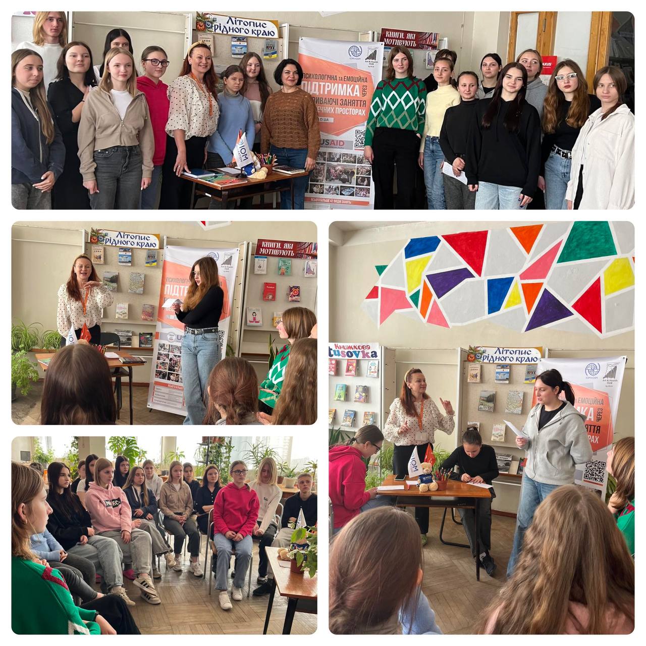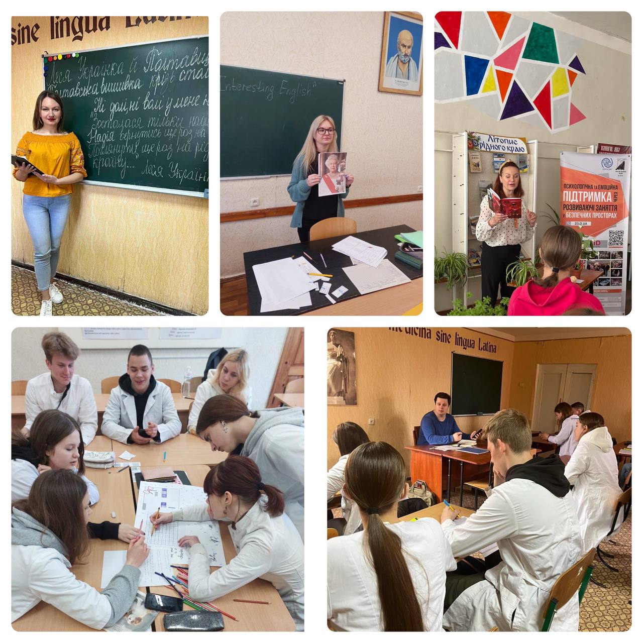 Цього ж дня викладачка української мови та літератури Алла ЛИСЕНКО та викладачка зарубіжної літератури Світлана АНДРЕЙКО для здобувачів освіти ОПП Фармація на базі бібліотеки-філії N5 ПМТГ організували творчу зустріч «Сила слова - підтримка й позитив» за участі сучасної української поетки, акторки, телеведучої Олени НИКИФОРЕНКО. Пані Олена читала власні вірші, а ще створила унікальну атмосферу справжнього інтерактивного шоу, де кожен відчув себе персонажем детективного чи ліричного сюжету. Було справді захопливо, весело та емоційно.