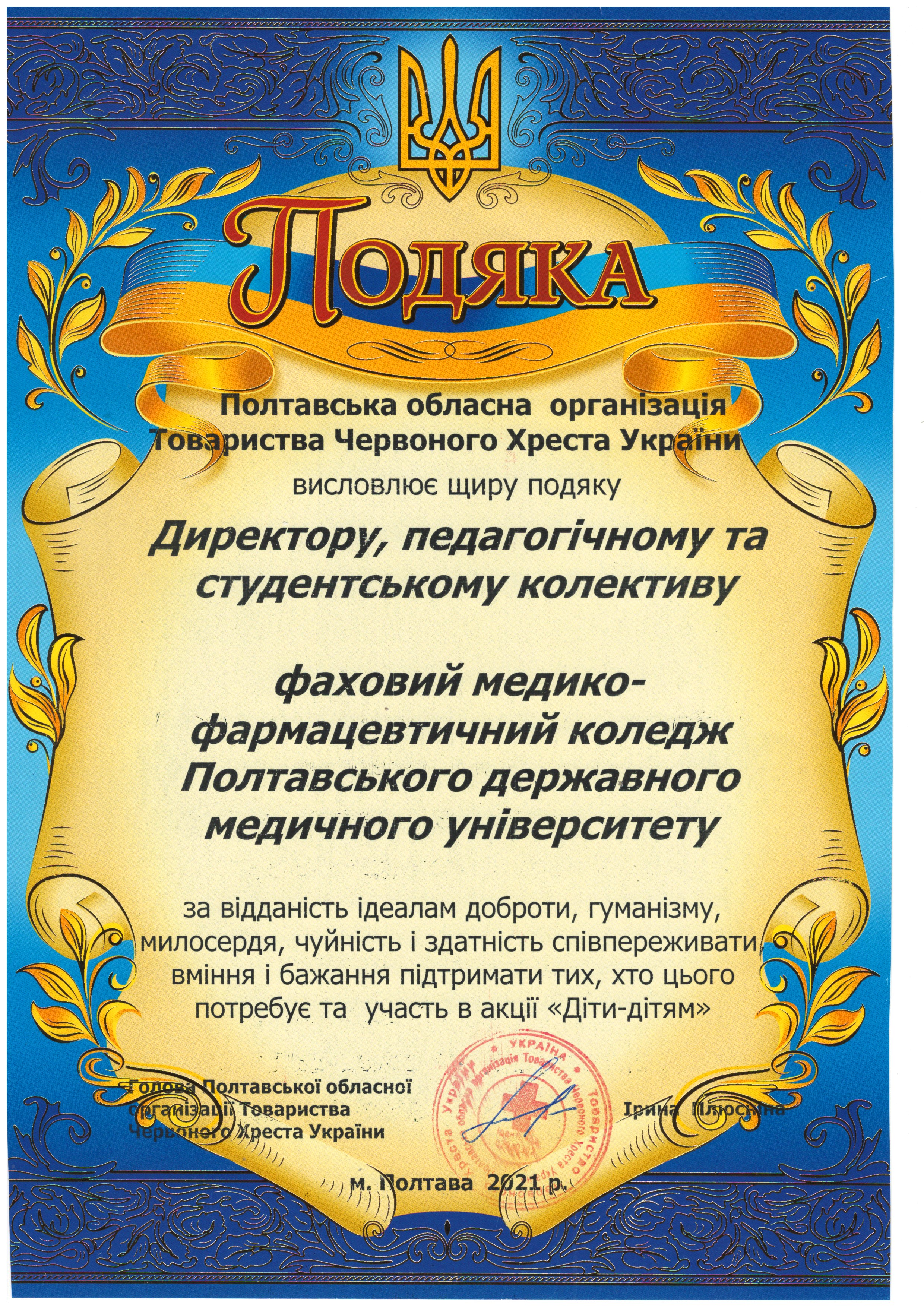Протягом тривалого часу фаховий медико-фармацевтичний коледж ПДМУ співпрацює із Полтавською обласною організацією Товариство Червоного Хреста України задля волонтерської допомоги незахищеним верствам населення.