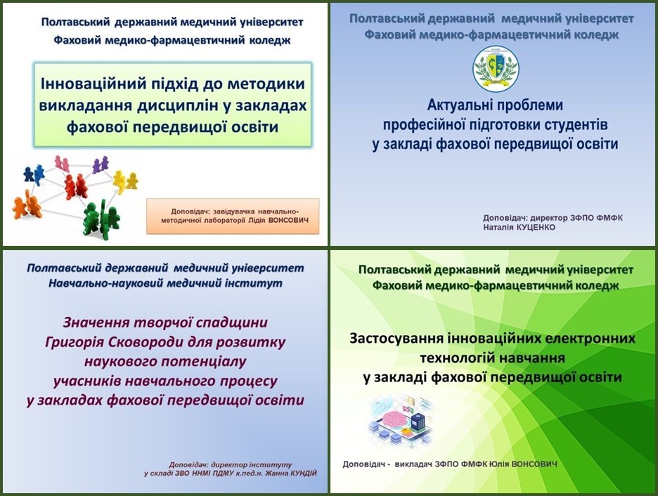 Відповідно до плану заходів з підготовки та відзначення 300-річчя з Дня народження Григорія Сковороди педагогічні працівники фахового медико-фармацевтичного коледжу Жанна Кундій, Наталія Куценко, Лідія Вонсович, Алла Герасименко, Юлія Вонсович взяли участь у Всеукраїнській науково-практичній онлайн-конференції з міжнародною участю «Лише той Учитель, хто живе так, як навчає», присвяченої Всесвітньому Дню філософії та 300-річчю з Дня народження земляка Григорія Сковороди організованої кафедрою філософії і економіки освіти Полтавської академії неперервної освіти ім. М.В. Остроградського.