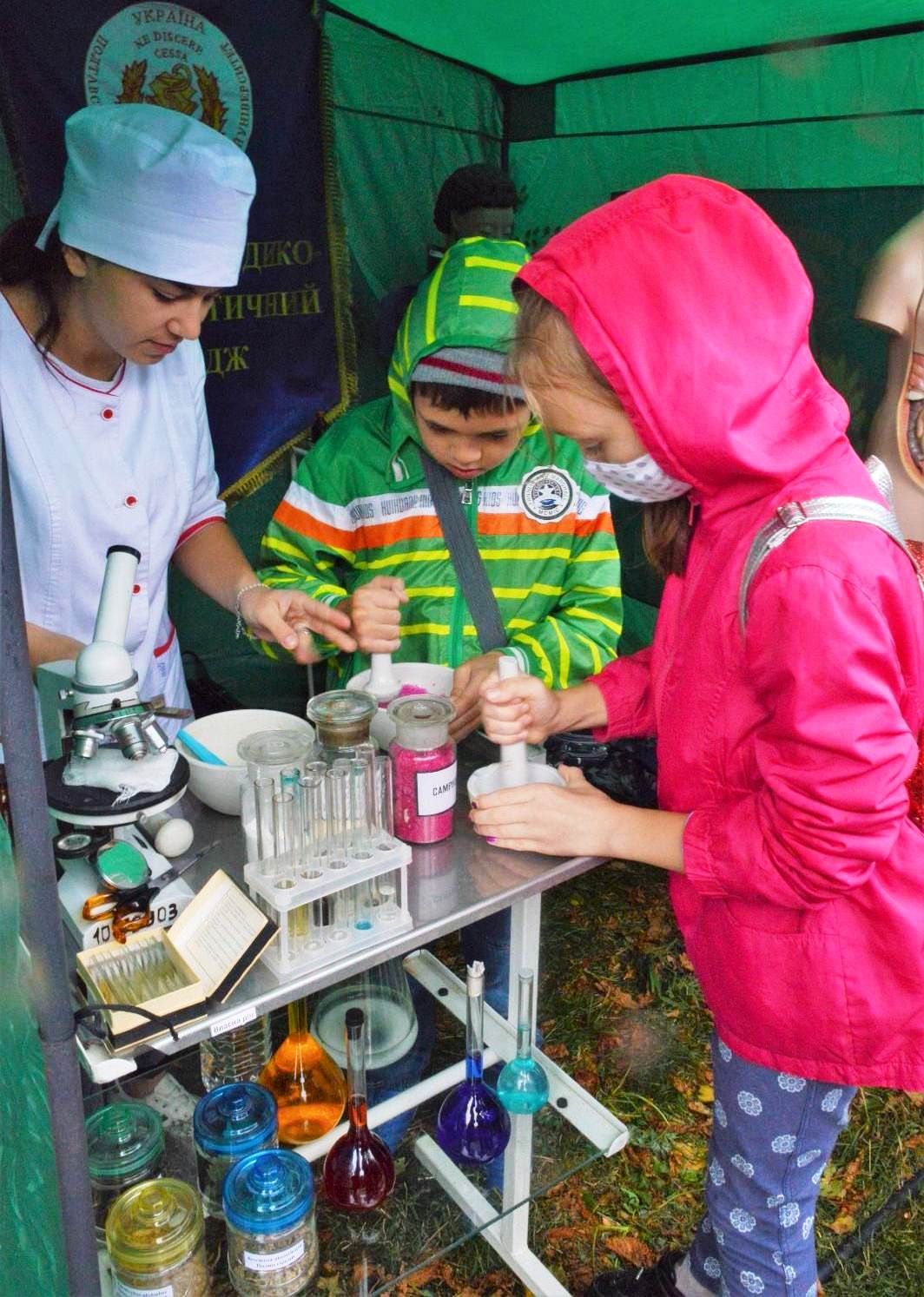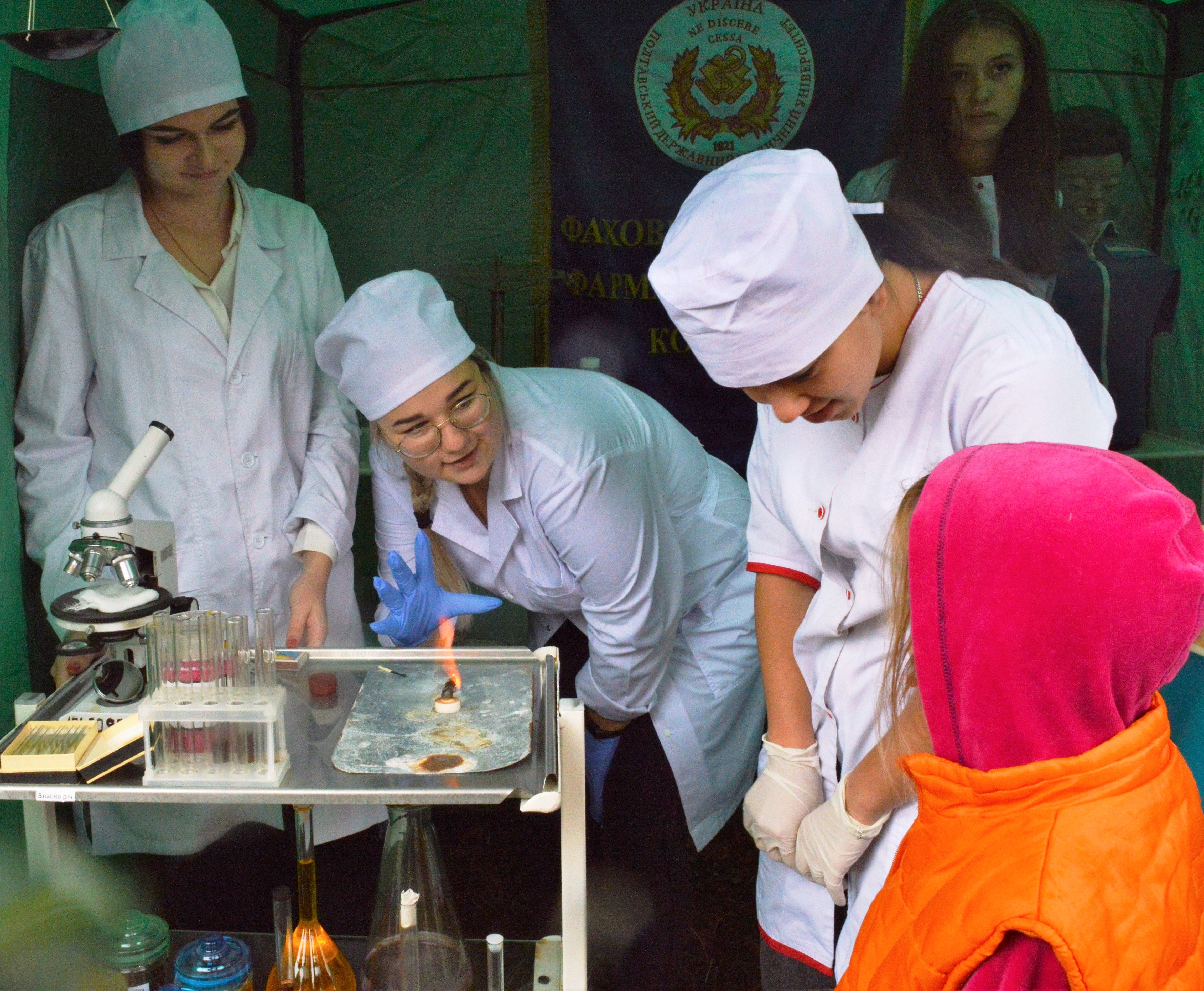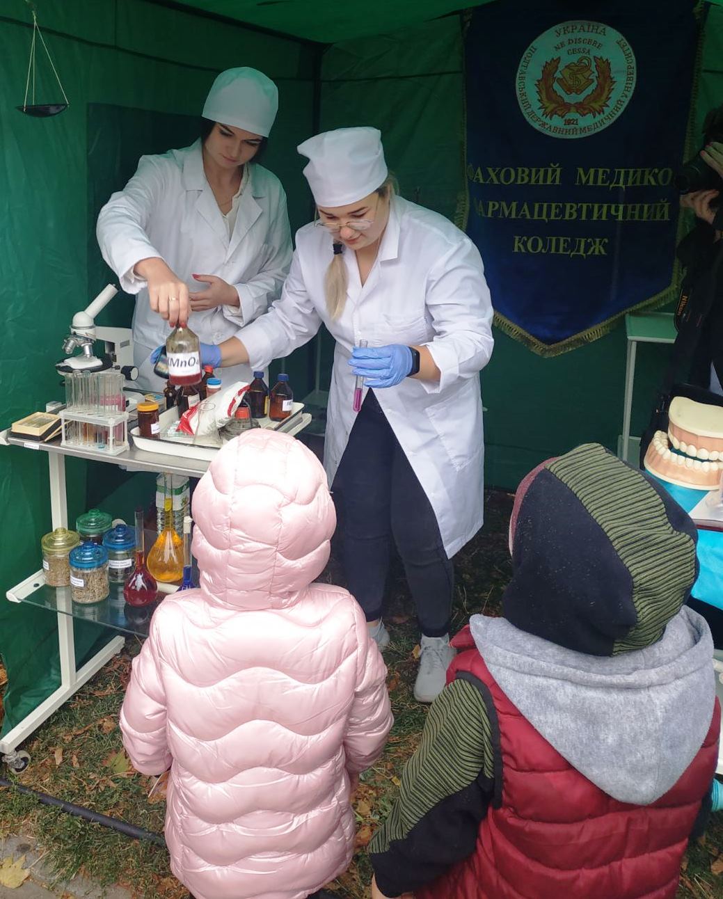 Були представлені професії фармацевта, сестри медичної та техніка зубного, які зацікавили всіх присутніх. Особливий ажіотаж та захоплення у дітей та молоді викликали хімічні досліди майбутніх фармацевтів. Незважаючи на несприятливі погодні умови, головна мета заходу була виконана - велика аудиторія гостей заходу виявила інтерес до фармації та медицини, а також бажання стати здобувачами освіти ФМФК ПДМУ.