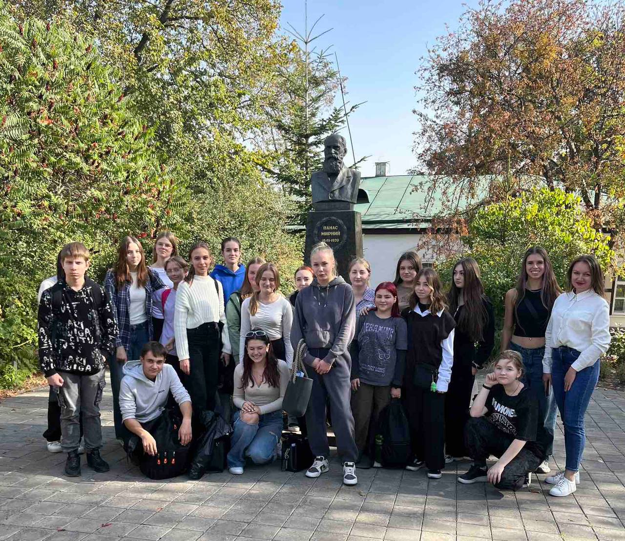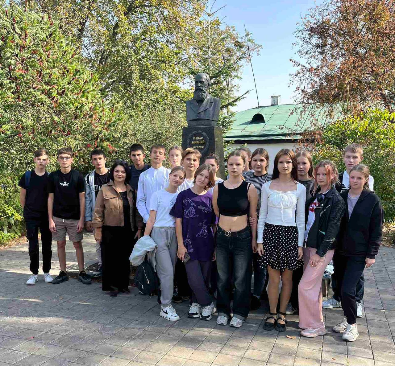 Теплого та сонячного осіннього дня здобувачі освіти 1 курсів медичного відділення разом із викладачками української мови та літератури Аллою Лисенко та Іриною Бутко відвідали літературно-меморіальний музей класика української літератури Панаса Мирного. Особливо приємною стала прогулянка великим садом, дерева й кущі в якому висаджені власноруч Панасом Мирним, адже саме ці мальовничі та затишні місця надихали письменника на написання творів, збагативши духовну скарбницю українського народу.