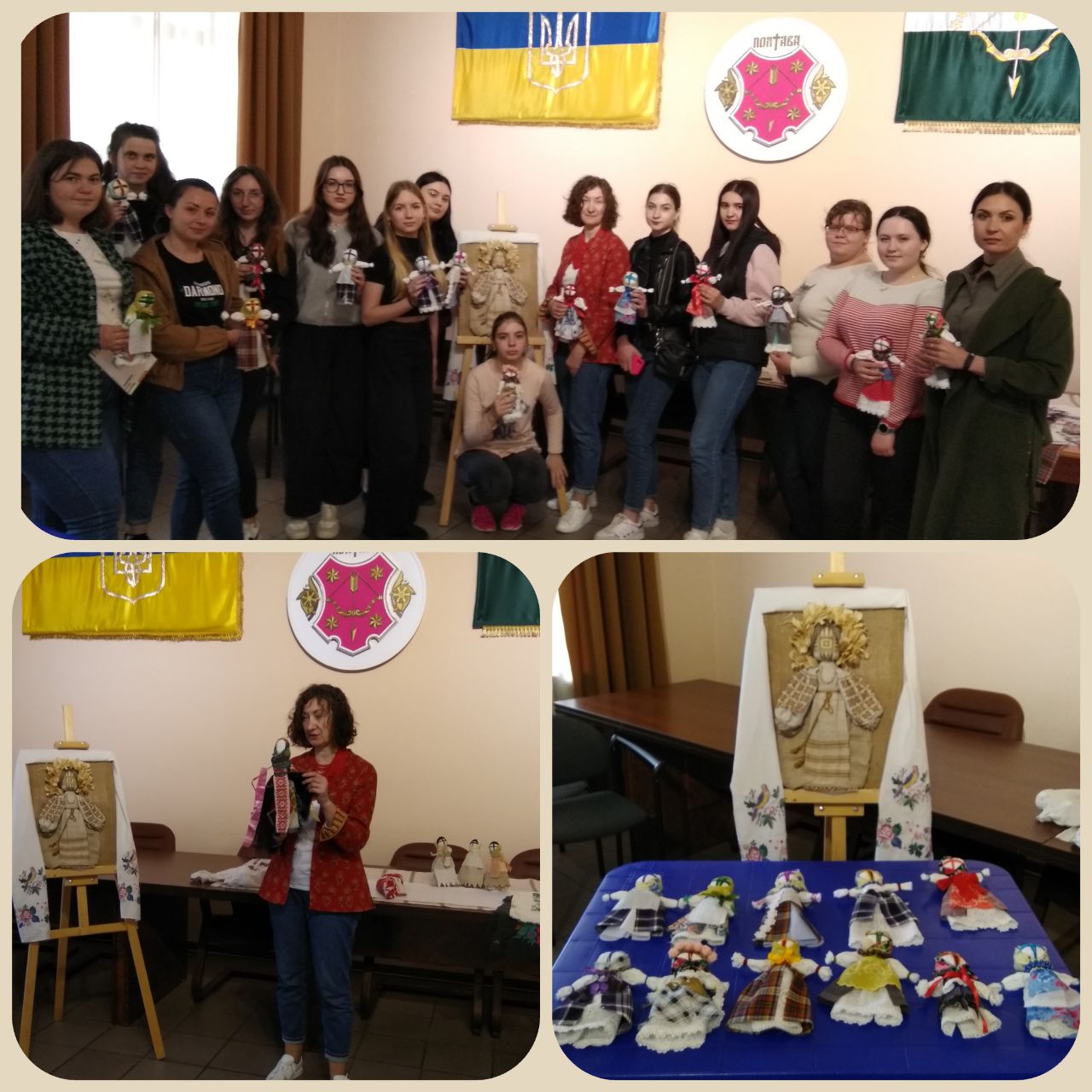 В рамках проєкту "Вивчай українське" від Департаменту культури, молоді та сім'ї Полтавської міської ради для студентів Навчально-наукового медичного інституту та Фахового медико-фармацевтичного коледжу було організовано майстер-клас із виготовлення ляльки-мотанки. Відчути дух українського автентичного мистецтва допомогла заслужена майстриня народної творчості України Наталія Свиридюк.