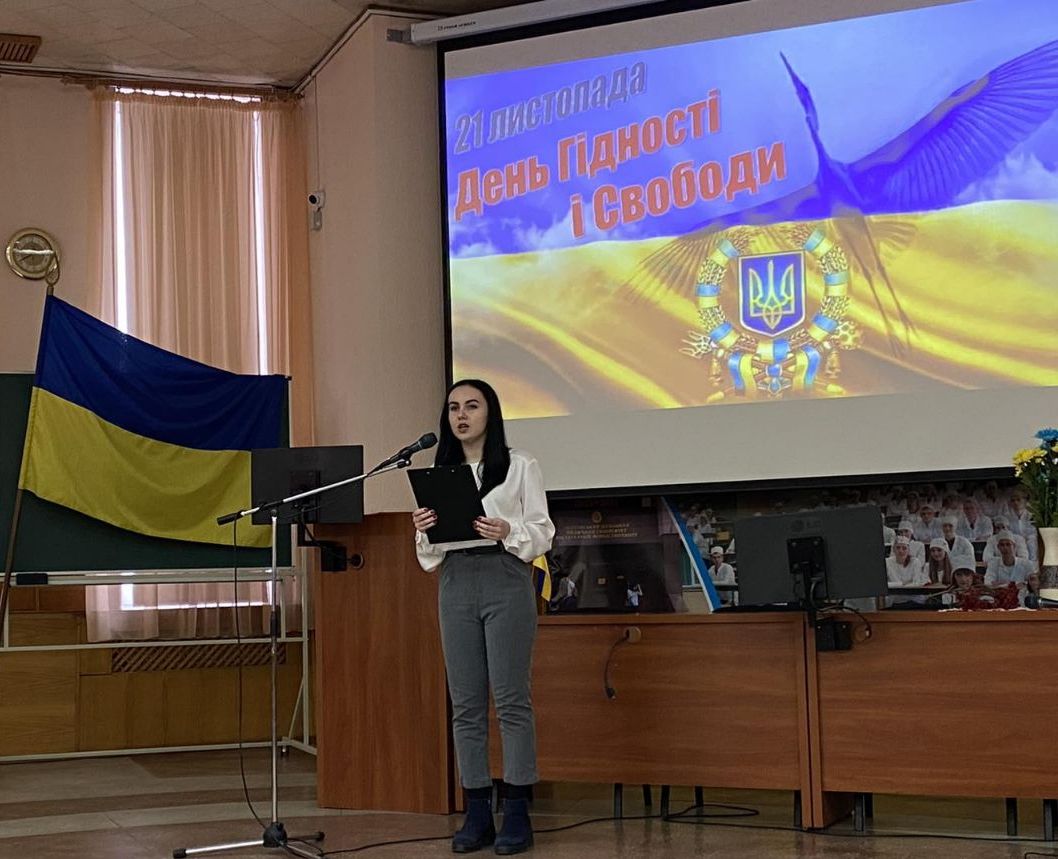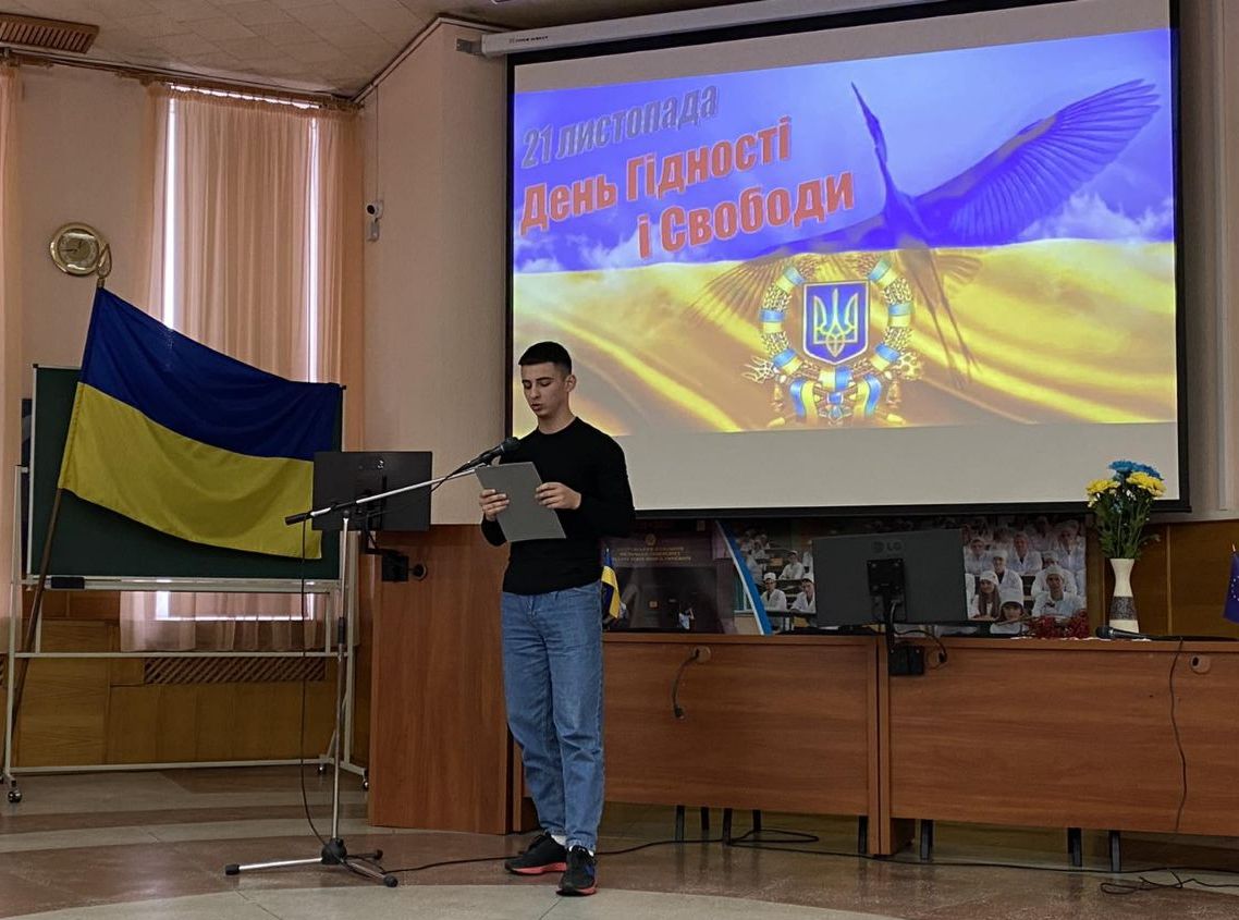 Напередодні Дня Гідності і Свободи студенти фахового медико-фармацевтичного коледжу ПДМУ зібрались, щоб відзначити 9-ту річницю драматичних подій листопада 2013-го – лютого 2014 років, які стали поворотним моментом в історії України. Вони отримали назву Революція Гідності, адже з почуття власної гідності народжується демократія, рівність і свобода. Саме усвідомлення людської і національної гідності змусило мільйони українців вийти на захист своїх прав і свобод, європейського вектору розвитку проти свавілля й несправедливості влади.