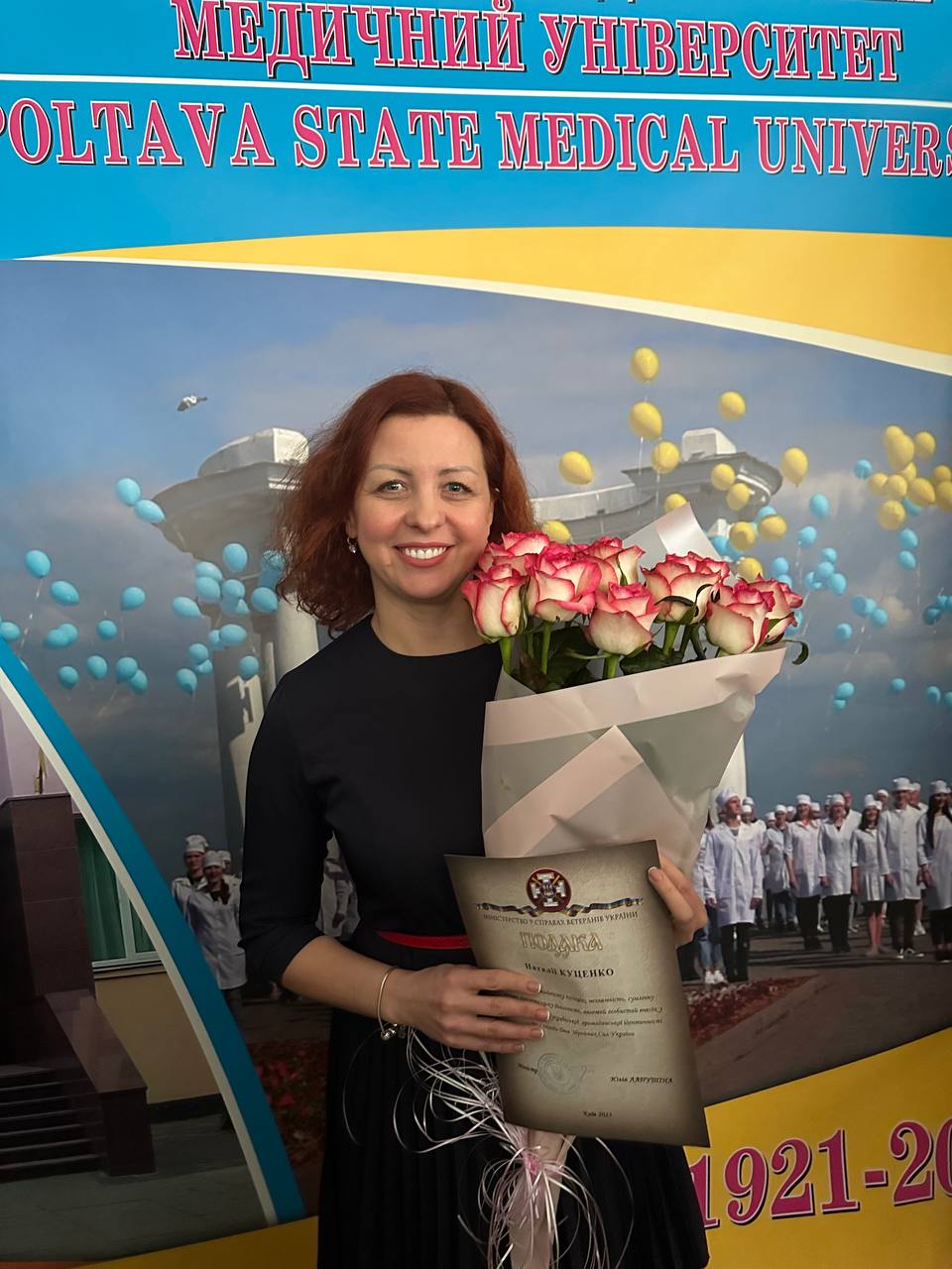 Викладацький колектив Фахового медико-фармацевтичного коледжу ПДМУ щиро вітає директора коледжу Наталію Куценко з нагородою Міністерства у справах ветеранів України за активну громадянську позицію, незламність, сумлінну працю, просвітницьку діяльність, вагомий внесок у справу формування української громадянської ідентичності та з нагоди Дня збройних сил України!