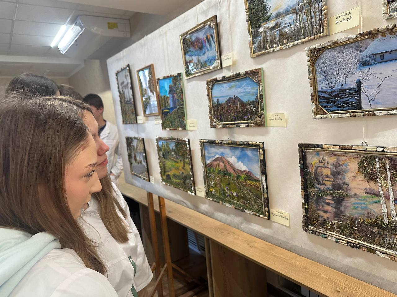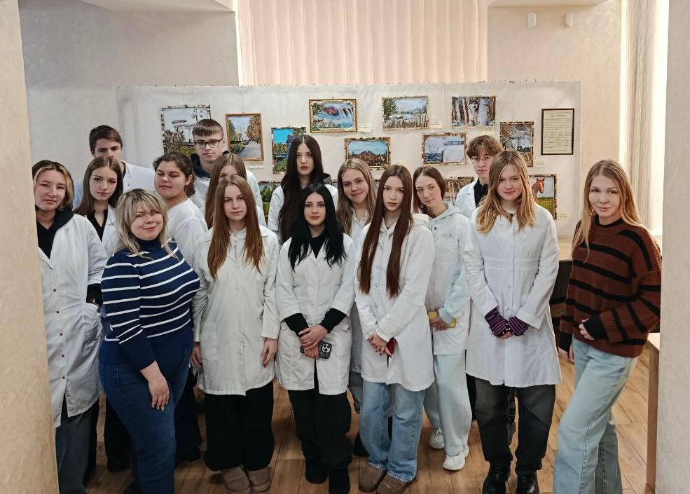 Здобувачі освіти ОПП Сестринська справа разом із заступником директора з виховної роботи Юлією Вонсович та викладачкою Таїсією Волковою відвідали бібліотеку ПДМУ та познайомилися з творчими роботами Сергія Захарченка, виконаними з використанням природних матеріалів і рослинних елементів.
