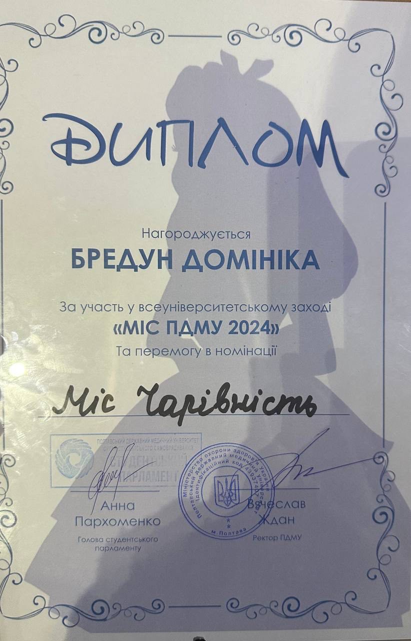 Вітаємо здобувачку освіти ОПП Сестринська справа фахового медико-фармацевтичного коледжу ПДМУ, Домініку Бредун, із перемогою у номінації «Міс чарівність» на всеуніверситетському конкурсі «Міс ПДМУ»!