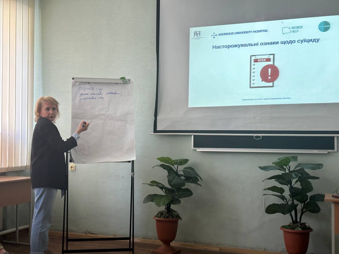 У межах проєкту «Міжвідомча співпраця у сфері охорони здоров’я» та в рамках реалізації Всеукраїнської програми ментального здоров’я «Ти як?», за програмою розробленою Центром психічного здоров'я Національного університету «Києво-Могилянська академія» та Університетською клінікою Акерсхус (Норвегія) практичним психологом Тетяною Климач для співробітників Навчально-наукового медичного інституту та Фахового медико-фармацевтиного коледжу проведено воркшоп на тему «Превенція суїциду в громадах. Навчання гейткіперів».