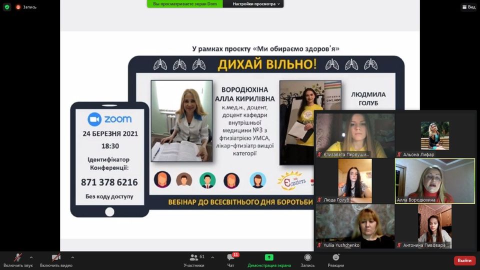 Також студенти коледжу взяли участь у вебінарі "Дихай вільно", що проходив у рамках проєкту "Ми обираємо здоров'я".