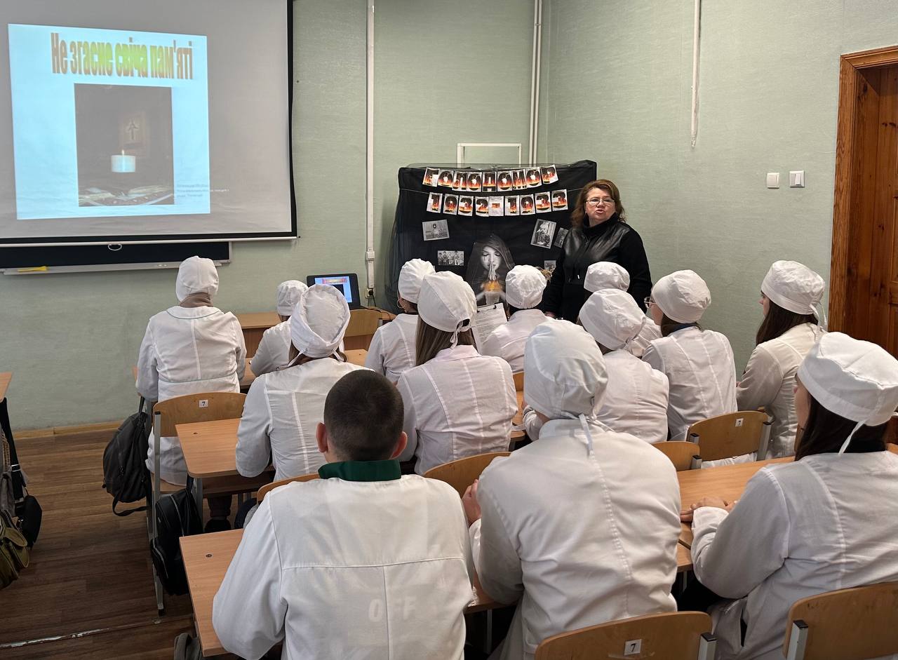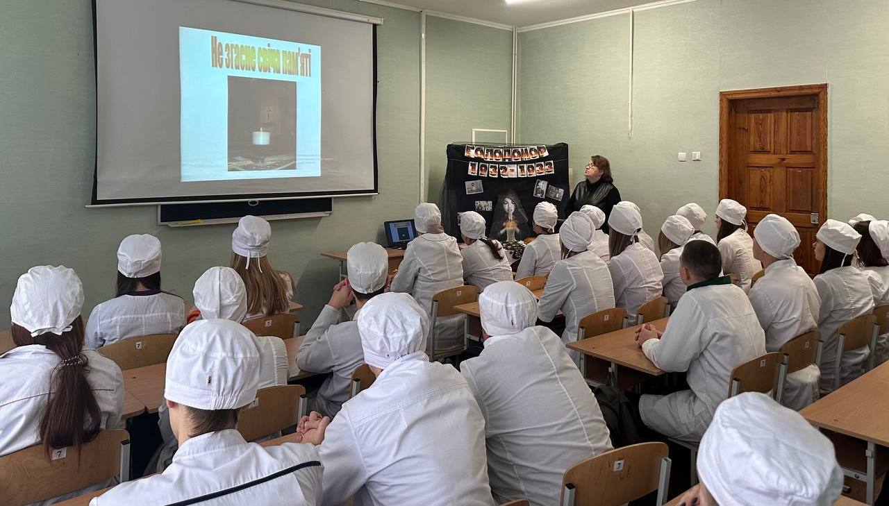 У Фаховому медико-фармацевтичному коледжі до Дня памʼяті жертв голодомору кураторами були проведені виховні години, а викладач Наталія Сизоненко провела інформаційно-виховний захід "Не згасне світло свічі!". Студенти переглянули вражаюче відео про Голодомор, як нагадування про важливість знання історії.