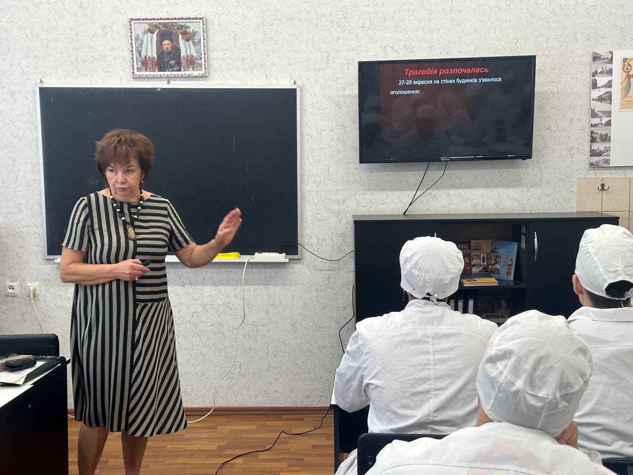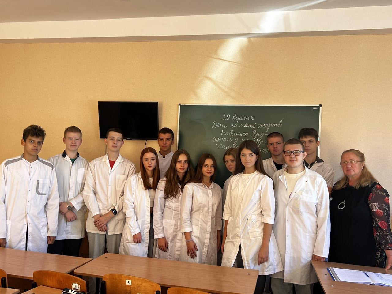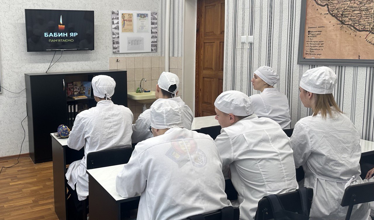 Сьогодні у Фаховому медико-фармацевтичному коледжі вшановували пам'ять жертв трагедії Бабиного Яру. Викладачі провели виховні години, під час яких студенти дізналися про страшну подію та хвилиною мовчання висловили повагу до тих, хто втратив життя. Трагедія Бабиного Яру завжди нагадуватиме нам про жах жорстокості та зруйнованих життів невинних людей. Цей день став символом великого горя. Він нагадує про важливість збереження миру, толерантності і пам'яті про минуле. Хочеться, щоб ця сторінка історії ніколи не повторилася, але, на жаль, геноцид щодо українського народу влаштований російським режимом відчуваємо нині. Пам'ятаймо і вчимося з минулого для благополучного майбутнього.