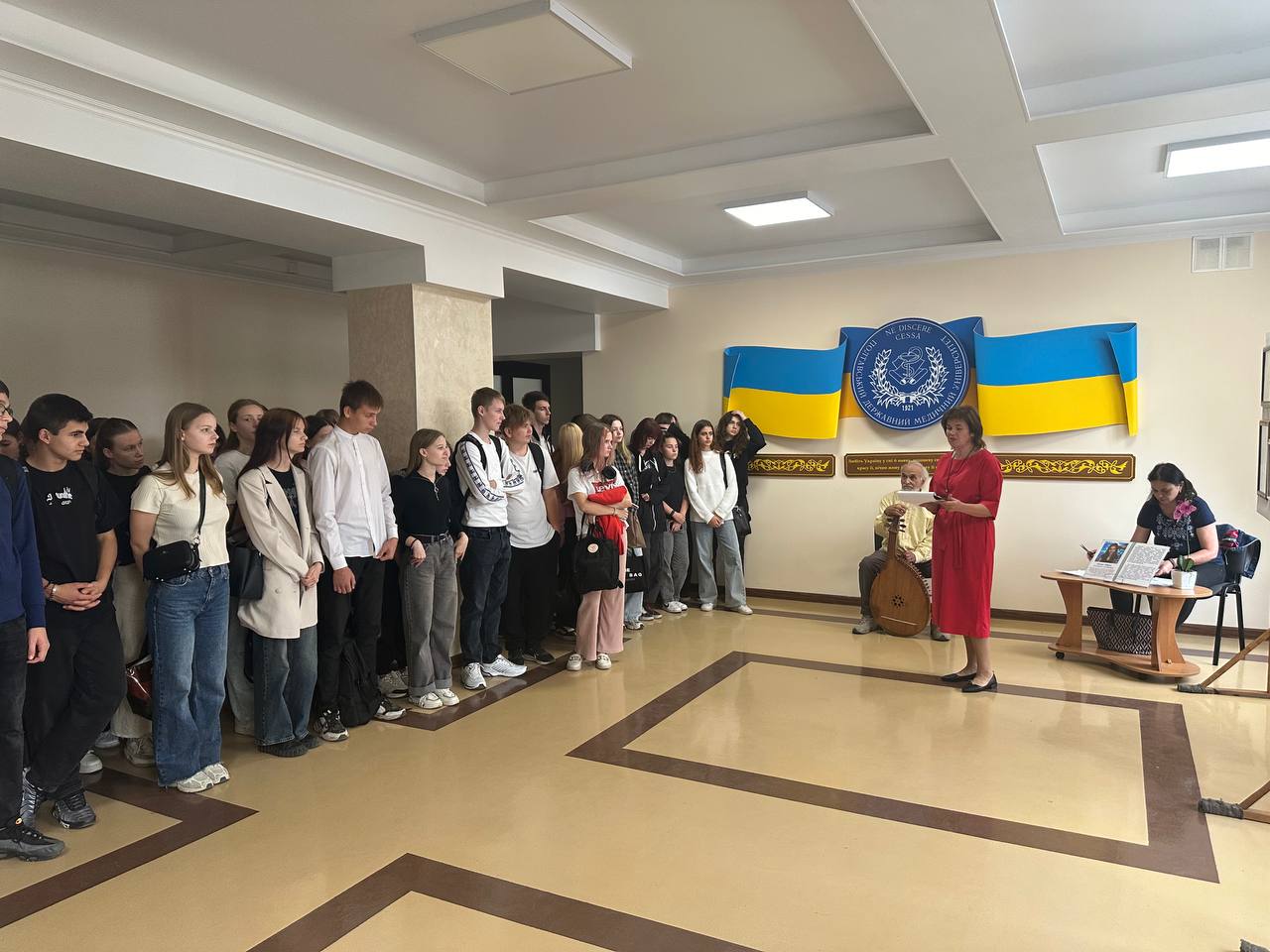 Студенти Фахового медико-фармацевтичного коледжу мали можливість відвідати персональну виставку картин полтавської художниці Олени Юрко та прослухати виступ українського лірника, кобзаря-бандуриста, Заслуженого художника України, члена Національної спілки кобзарів та Національної спілки майстрів народного мистецтва України – Івана Новобранця.