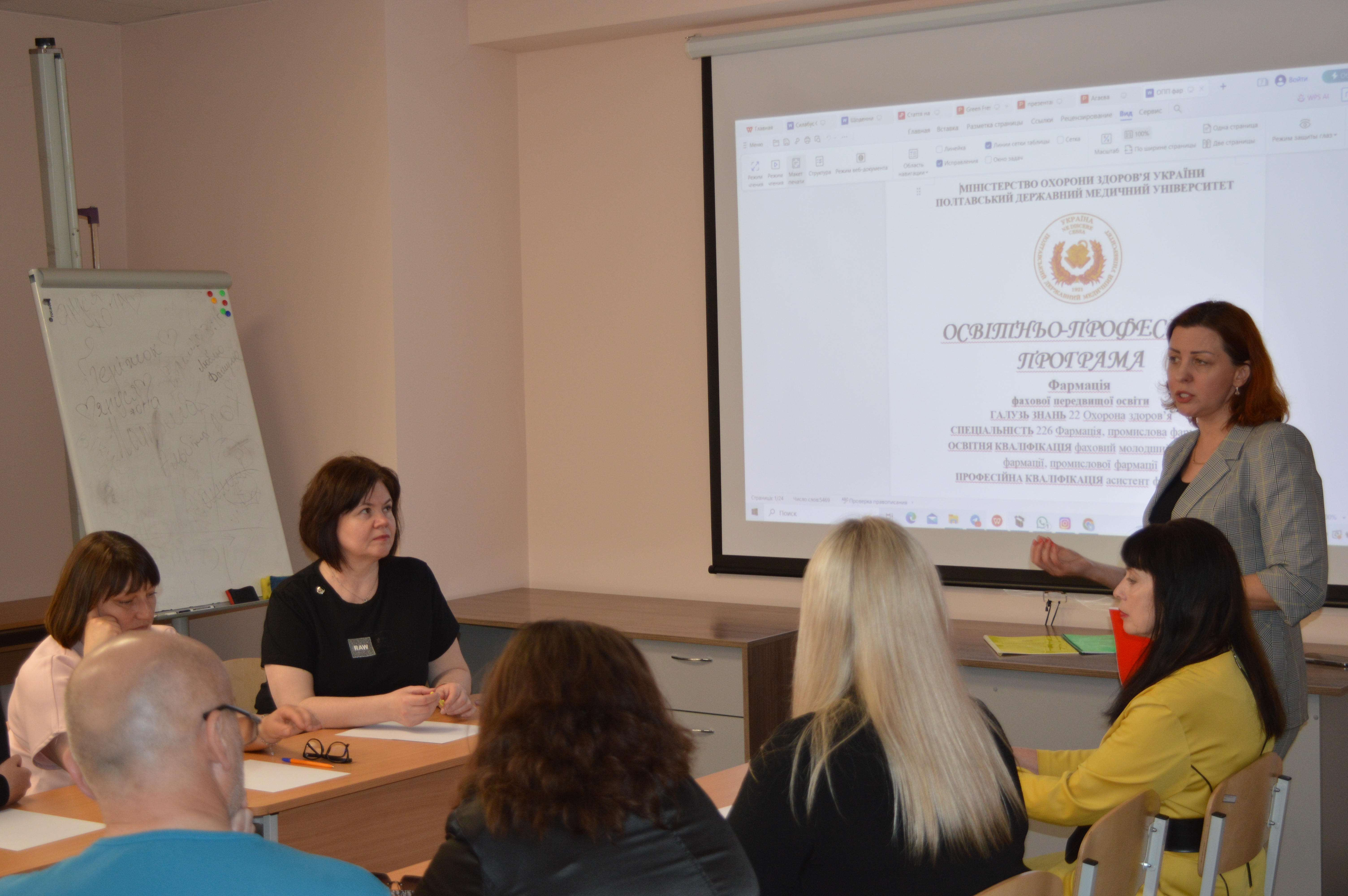 До обговорення програми активно долучились роботодавці Наталія Писаченко, заступник директора з якості ТОВ «Ліки Полтавщини» та Валентина Токарєва, завідувачка аптеки №77 ТОВ «АНЦ Полтава», зосередивши увагу на практичних уміннях майбутніх випускників.