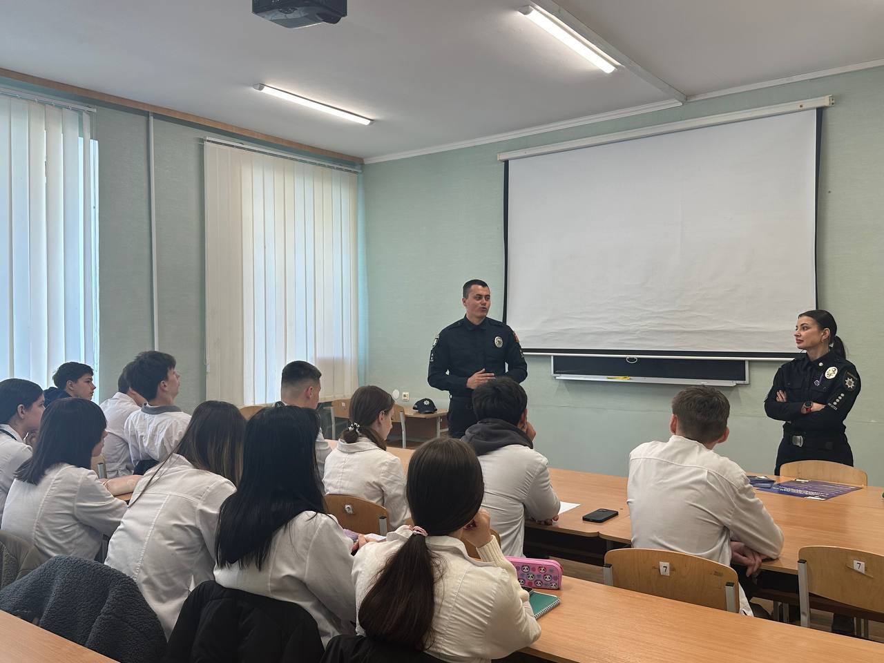 У межах Тижня безпеки дорожнього руху, який тривав з 12 по 18 травня, до студентів фахового медико-фармацевтичного коледжу завітали співробітники управління Патрульної поліції Полтавської області — Ярослава Лемішко та Микола Гума.