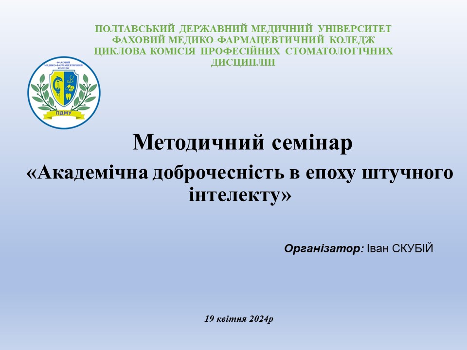 Тематика методичних семінарів спрямована на обговорення актуальних питань організації освітнього процесу, вивчення, поширення педагогічного досвіду та на обмін досвідом з використання інноваційних технологій.