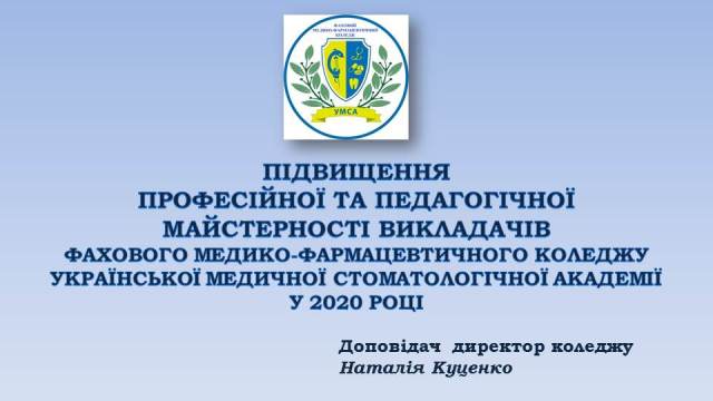 Доповідь директора фахового медико-фармацевтичного коледжу Куценко Н.П. з питання "Про підвищення професійної та педагогічної майстерності викладачів коледжу у 2020 році"