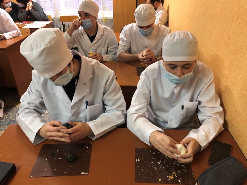 Під час заняття вони повторили правила виготовлення мазей, розглянули класифікацію мазевих основ, виконали розрахунки вмісту діючих речовин та перейшли до практичної частини, де виготовляли гомогенні та гетерогенні мазі.