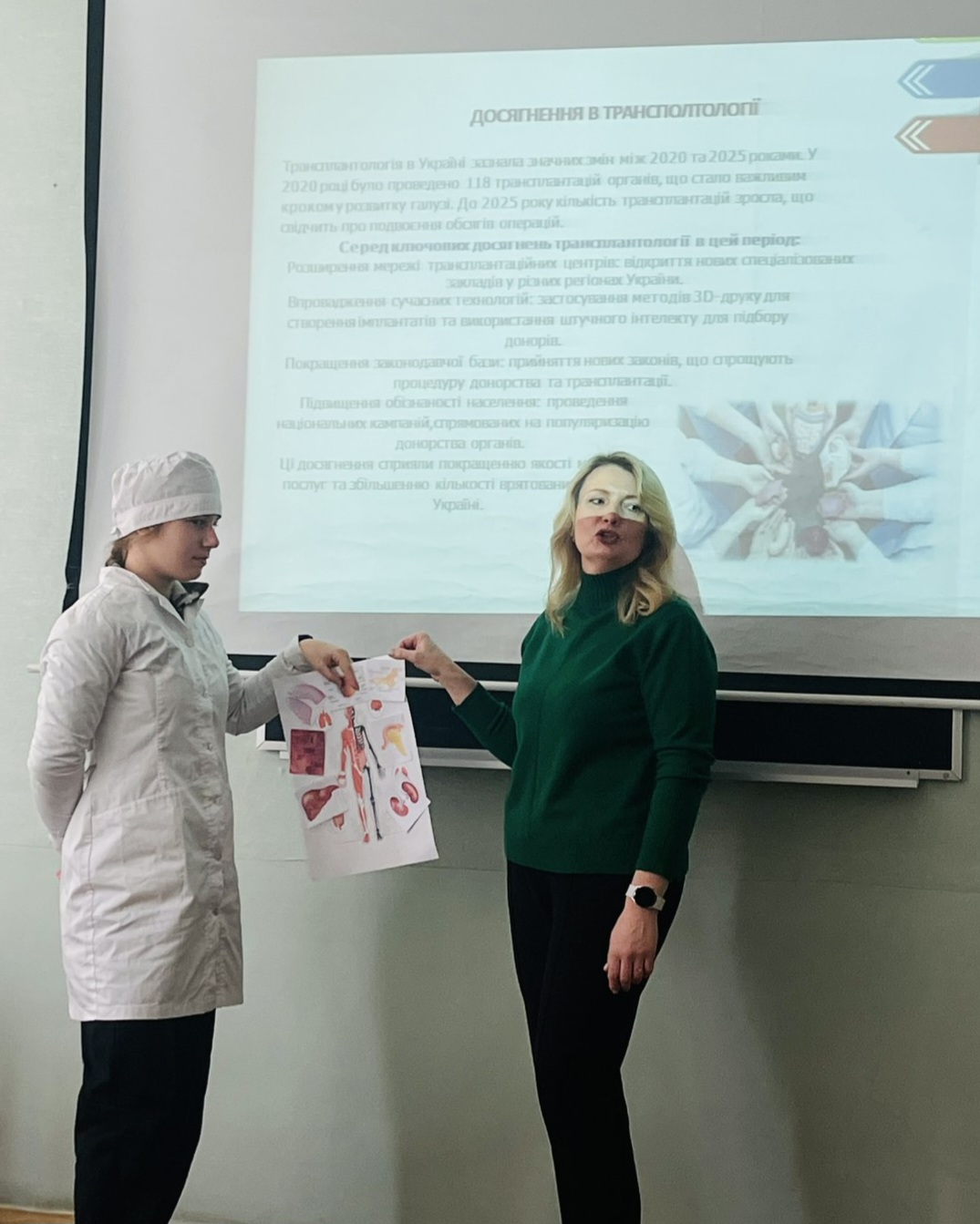 На занятті студенти отримали нові знання про трансплантологію, навчились аналізувати інформацію, розвінчувати міфи про донорство, відрізняти факти від стереотипів.